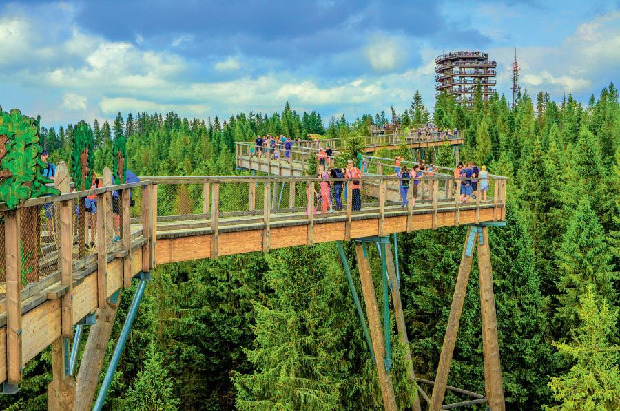 Na szczęście nie musimy jechać w bardzo egzotyczne miejsca, aby spacerować w koronach drzew. Ładną drewnianą ścieżkę mamy tuż za południową granicą na Słowacji. Nazywa się Bachledka i ma ponad 600 m długości. Na końcu znajduje się wieża widokowa o wysokości 32 m. Wewnątrz wieży zbudowano efektowną zjeżdżalnię rurową.
