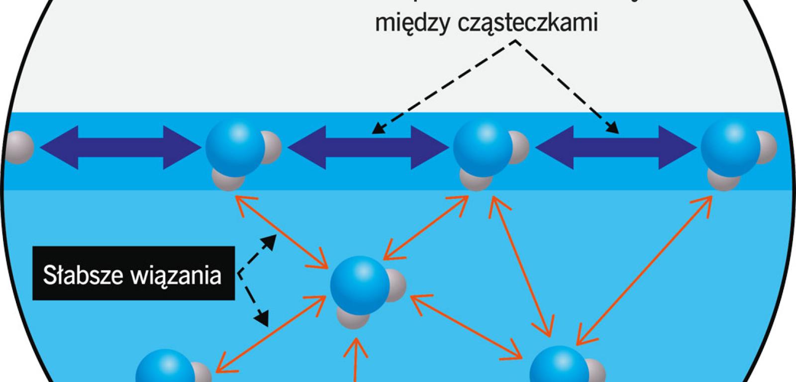 • Woda wrze w warunkach normalnych w 100°C. Powinna wrzeć w temperaturze pokojowej, ale wiązania wodorowe istniejące między jej cząsteczkami sprawiają, że trzeba dostarczyć o wiele więcej energii, aby zaszła przemiana cieczy w gaz.