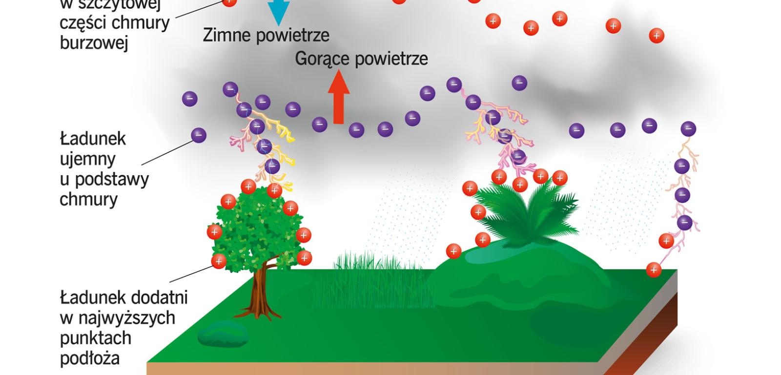 Wyładowania atmosferyczne to jedne z najstarszych zjawisk naturalnych obserwowanych na Ziemi. Od setek milionów lat wywołują pożary. Nasi przodkowie z epoki kamiennej korzystali z tego naturalnego ognia, zanim sami nauczyli się go wzniecać. W mitach i legendach pioruny odgrywały pierwszoplanową rolę. Najważniejszy grecki bóg Zeus miał przydomek Gromowładny. W znacznie bliższych nam czasach, czyli w cyklu opowieści o Harrym Potterze, główny bohater zostaje potraktowany przez Voldemorta uśmiercającym zaklęciem Avada Kedavra, któremu towarzyszy zielony błysk. Harry’emu udaje się przeżyć, ale na czole pozostaje mu blizna w kształcie błyskawicy. Prawdziwy piorun powstaje w wyniku silnego naelektryzowania chmury burzowej. Dzieje się tak, gdy tworzące chmurę kropelki przechłodzonej wody (mają ujemną temperaturę) oraz kryształki lodu ocierają się o siebie, przekazując sobie ładunki elektryczne. Elektryzowanie poprzez tarcie jest zjawiskiem powszechnym. W podobny sposób można naelektryzować włosy, rozczesując je grzebieniem, albo nadmuchany balon, pocierając go o wełnianą tkaninę.