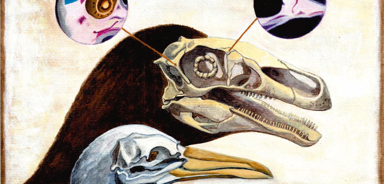Choć ich wygląd na to nie wskazuje, ptaki to potomkowie przemierzających Ziemię 200 mln lat temu dinozaurów. W drodze ewolucji utraciły charakterystyczne dla swoich kuzynów uzębienie, zwiększyły pojemność czaszki, wielkość mózgu i oczu. Ich czaszka składa się z wielu kości, które razem tworzą anatomiczną i funkcjonalną całość. Ale naukowców od dłuższego czasu zastanawiało, dlaczego brakuje wśród nich kości przedczołowej i zaoczodołowej. U dinozaurów znajdowały się one odpowiednio w kąciku oka i za gałką oczną. Przeprowadzone na embrionach badania pozwoliły odnaleźć zgubę. Okazało się, że u ptaków kości te są obecne, ale jedynie w rozwoju zarodkowym. W miarę rozwoju embrionu łączą się one z pozostałymi kośćmi czaszki i dlatego w dorosłym życiu osobniczym nie pozostaje po nich żaden ślad. „Wewnętrzny dinozaur” pojawia się w czasie embrionalnego rozwoju ptaków, ujawniając skrzętnie ukrytą historię ewolucji obu grup.