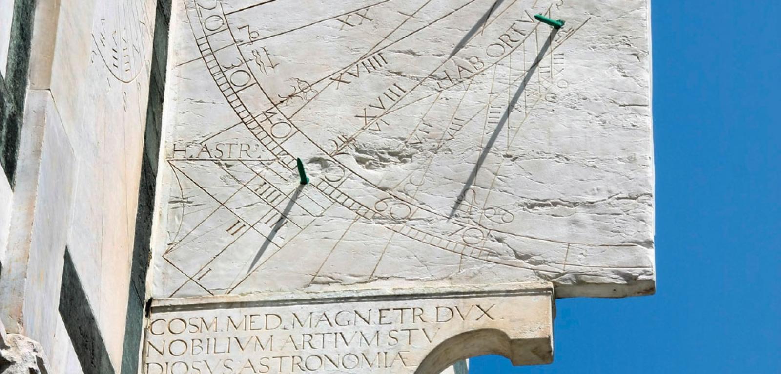 Południe słoneczne to kluczowy moment w pozornej wędrówce słońca po niebie. Wtedy znajduje się ono najwyżej. Marmurowa płytka w katedrze Santa Maria del Fiore z dokładnością do pół sekundy pokazuje tę kulminację. Wszystko jest dziełem Paola dal Pozzo Toscanellego, astronoma, matematyka i kartografa żyjącego we Florencji w XV w. Należał on do największych umysłów tamtej epoki. Zachęcał portugalskiego króla Alfonsa V do wysłania żeglarzy na zachód przez Ocean Atlantycki, twierdząc, że w ten sposób szybciej dotrą do Azji. Władca Portugalii go nie posłuchał. W podróż wyruszył dopiero Krzysztof Kolumb, który korespondował z uczonym z Florencji, aż w końcu popłynął we wskazanym przez niego kierunku. Około 1470 r. Toscanelli pojawił się w katedrze florenckiej w dość nietypowym celu. Postanowił bowiem stworzyć w niej gigantyczny zegar słoneczny. Za jego pomocą chciał wyznaczyć południe słoneczne oraz wskazać dzień przesilenia letniego, kiedy słońce góruje najwyżej w całym roku.