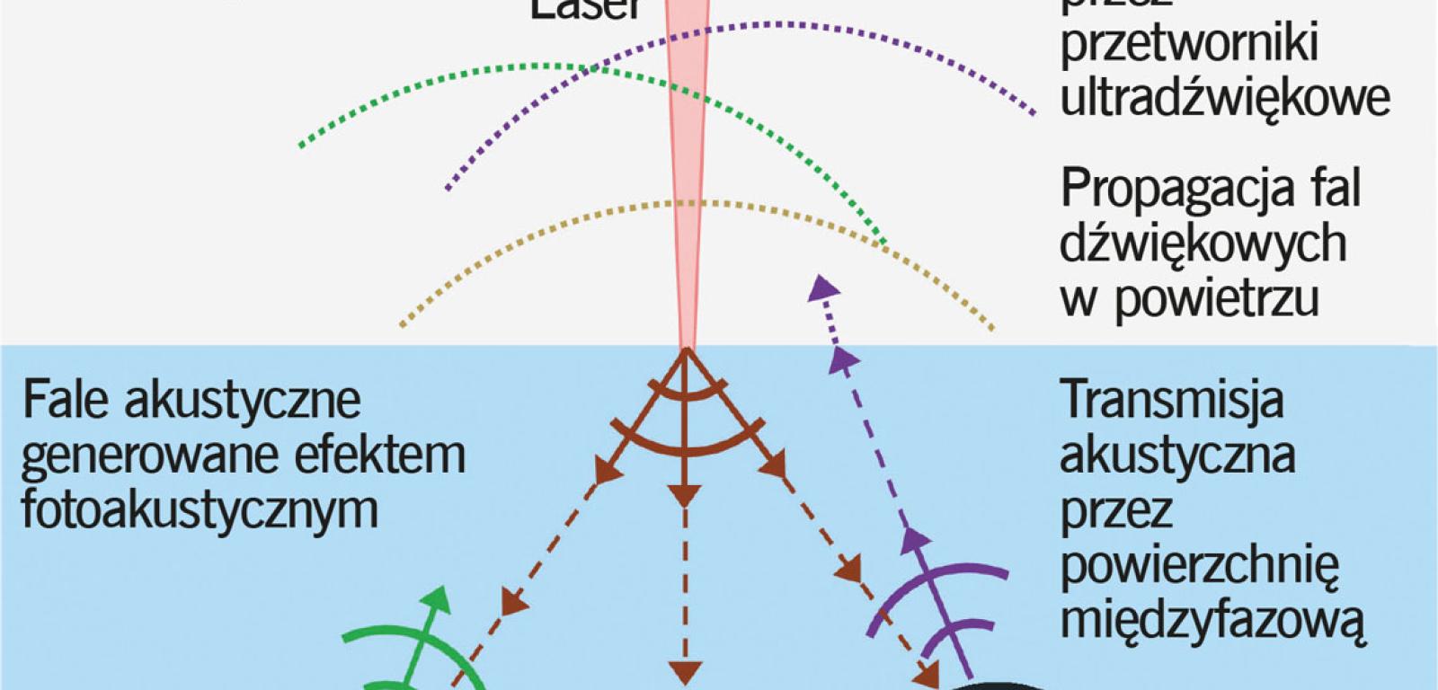 Śledzenie obiektów podwodnych z powietrza jest zadaniem bardzo trudnym. Fale dźwiękowe, wykorzystywane m.in. przez sonary na okrętach podwodnych, są tu bezużyteczne. 99,9% z nich odbija się bowiem od powierzchni wody, a trzeba pamiętać, że dźwięk musi przebyć tę drogę dwukrotnie. Skutkuje to stratami na poziomie 99,9999%. Z kolei fale elektromagnetyczne nie odbijają się aż tak silnie, ale są pochłaniane przez wodę. Zespół uczonych ze Stanford University (USA) postanowił połączyć te dwa źródła informacji, tworząc fotoakustyczny powietrzny system sonarowy (PASS, photoacoustic airborne sonar system). Wykorzystuje się tutaj umieszczony na dronie laser, którego promień, trafiając w powierzchnię wody, generuje ultradźwiękową falę akustyczną. Fala ta odbija się od obiektów podwodnych i wraca jak w klasycznych sonarach. Jest odbierana przez specjalny zespół przetworników umieszczonych na dronie, a następnie przetwarzana na obraz 3D. Tego typu hybrydowy system optyczno-akustyczny może służyć do badania fauny morskiej, mapowania powierzchni podwodnych czy poszukiwania wraków.