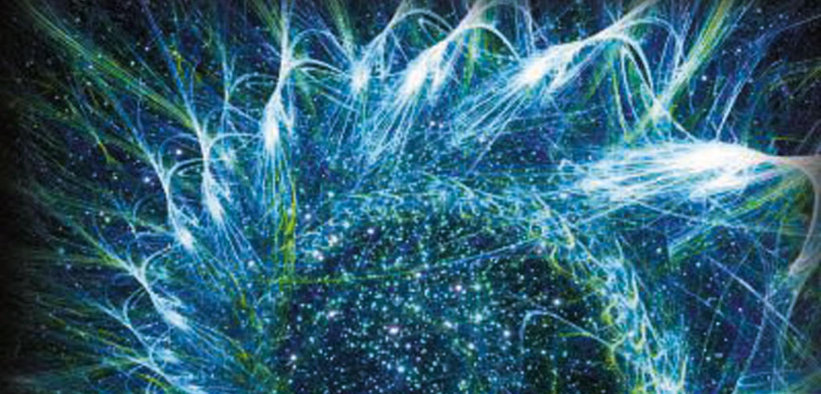 Jak wiadomo, nasza zawierająca 300 mld gwiazd Droga Mleczna nie jest jedyną galaktyką we wszechświecie. Istnieje niezliczona ilość innych, równie dużych jak nasza. Cały ten zbór galaktyk ulega ekspansji. Lecz jaki jest ich faktyczny rozkład w przestrzeni? Gdy stworzono trójwymiarowe mapy rozkładu galaktyk, wyłoniła się struktura podobna do gąbki. Wielkie gromady galaktyk łączą się ze sobą za pomocą włókien czy też łańcuchów galaktyk, podczas gdy pustki o niskiej gęstości łączą się za pomocą tunelów o niskiej gęstości. Nazywamy tę strukturę kosmiczną pajęczyną. Odkryto wielkie gromady połączone ze sobą długimi na miliardy lat świetlnych włóknami z łańcucha galaktyk. To największe struktury w naszym wszechświecie. Zmierzono jedną z nich, Wielką Ścianę Sloana, która znajduje się w gwiazdozbiorze Panny. Ma ona długość 1,37 mld lat świetlnych. Nie jest związana grawitacyjnie, ale jest spójną strukturą, która zachowa swoją tożsamość, gdy wszechświat będzie kontynuował ekspansję. W przyszłości będzie jeszcze dłuższa, ponieważ wszechświat (a więc i kosmiczna pajęczyna) się rozszerza, natomiast dzięki grawitacji będzie tak samo wąska, a może nawet węższa w miarę upływu czasu. Szczególnie spektakularna jest lewa strona (wschodnia) Wielkiej Ściany Sloana, złożona z kilku dużych gromad. Potem rozszczepia się na dwa włókna, jakby wielopasmowa autostrada na moment przechodziła w dwa osobne ciągi, aby potem na zachodnim końcu ponownie połączyć się w jedno włókno.