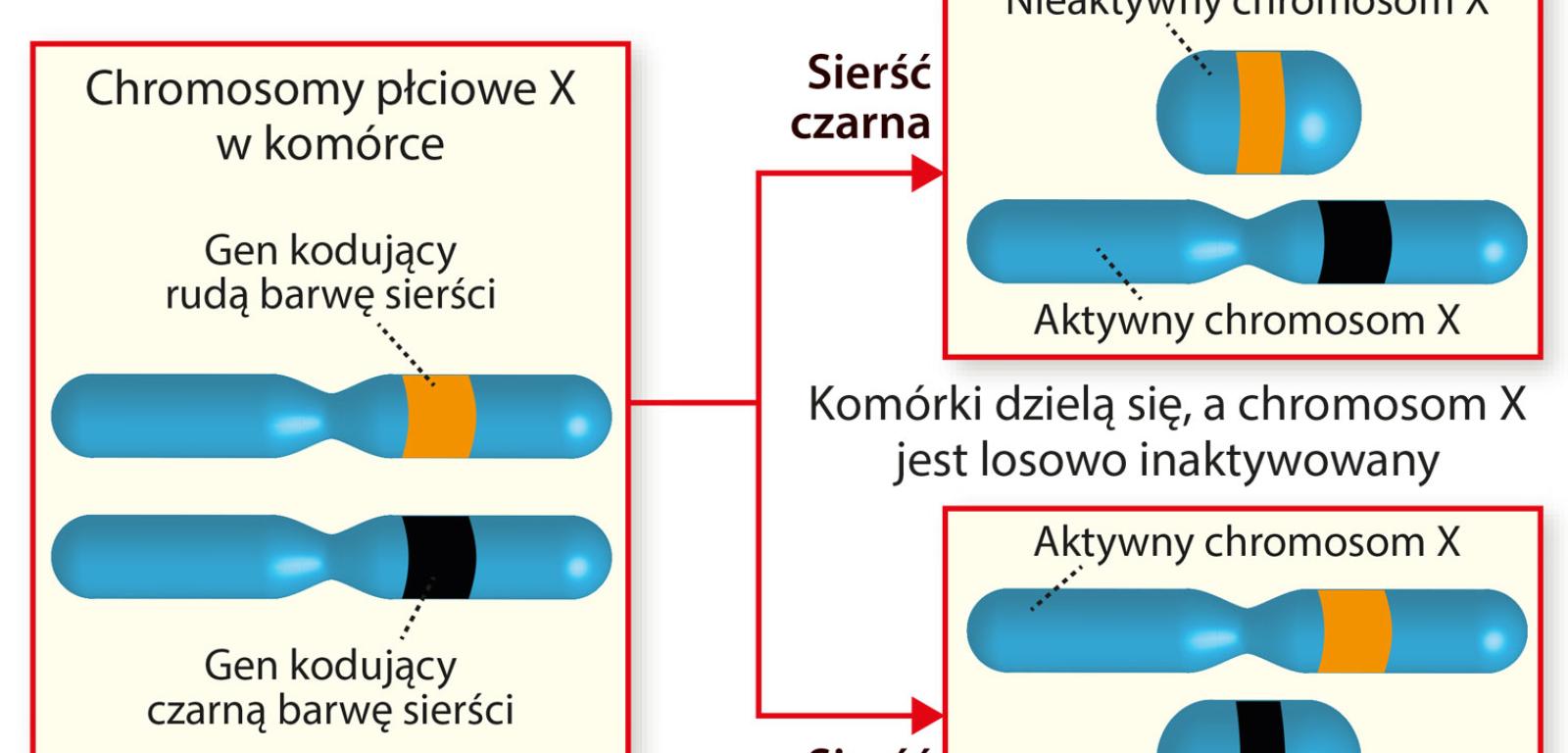Jednymi z najlepiej do tej pory opisanych długich niekodujących RNA są produkty genów Xist oraz Tsix. Są one zaangażowane w proces inaktywacji jednego z dwóch chromosomów X. Zjawisko to zachodzi jedynie w komórkach samic ssaków, które mają dwa chromosomy płciowe X. U samców nie ma takiej potrzeby, gdyż posiadają one jeden chromosom X i jeden Y. Klasycznym przykładem inaktywacji chromosomu X, który można obserwować gołym okiem, jest ubarwienie kotek szylkretowych. To właśnie na tym chromosomie zlokalizowane są geny odpowiedzialne za czarny i brązowy kolor futra. Na skutek losowego procesu jedne komórki mają nieaktywny chromosom z genem kodującym brązowy, a inne czarny kolor futra. W konsekwencji samice są szylkretowe, a więc czarno-brązowe.