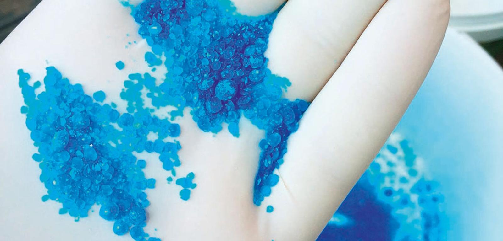 W szklance w 50 ml wody rozpuść pół łyżeczki węglanu amonu (dostępnego w sklepach spożywczych) i oceń barwę roztworu. Dodaj pół łyżeczki chalkantytu (siarczanu miedzi, dostępnego w sklepach z odczynnikami chemicznymi lub w sklepach z minerałami) oraz (zachowując należyte środki ostrożności) kilkanaście granulek NaOH (preparat do udrożniania rur). Zamieszaj roztwór plastikową łyżką i ponownie oceń jego barwę.