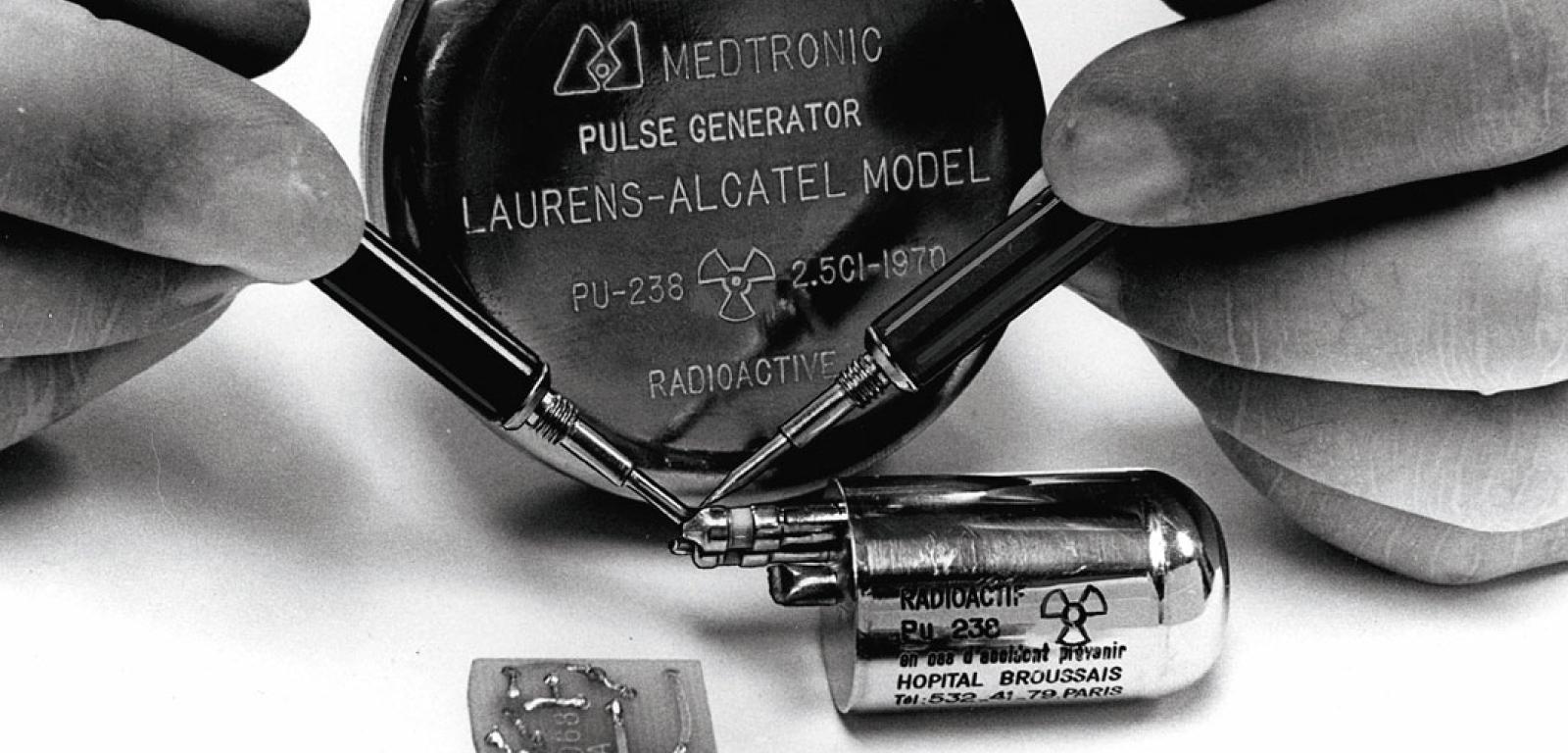 Jako ciekawostkę można dodać, że na świecie nadal żyje kilka osób ze stymulatorem atomowym. Na początku lat 70. XX w. amerykańska firma Medtronic we współpracy z francuskim Alcatelem stworzyła urządzenie zasilane promieniotwórczym plutonem. Prąd elektryczny generowany był dzięki termostosowi (zespołowi termopar) wykorzystującemu naturalne ciepło wydzielane w sposób ciągły przez pluton. Kilka modeli produkowano na świecie przez jakieś 10 lat, po czym zaprzestano ich wytwarzania, ponieważ na rynku pojawiły się efektywne baterie litowe. Stymulatory atomowe wszczepiano głównie młodym ludziom, ponieważ ich czas działania w założeniu mógł wynosić ponad 100 lat. Łącznie działających urządzeń tego typu powstało ponad 100. Dziś stymulatory zasilane pierwiastkami promieniotwórczymi to już historia. Gdy osoba wyposażona w takie urządzenie umiera, zostaje ono usunięte z ciała i odesłane do amerykańskiego laboratorium atomowego w Los Alamos, gdzie odzyskuje się z niego radioaktywny pluton.
