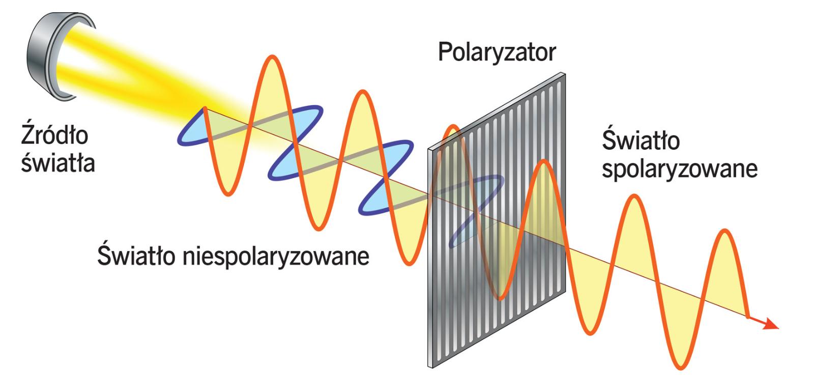 Światło ma jeszcze jedną własność, której nie dostrzegamy – określa ona, jak płaszczyzna drgań fali świetlnej ma się do kierunku jej rozchodzenia. Światło niespolaryzowane jest w istocie mieszaniną fal o różnych płaszczyznach polaryzacji. Zasadniczo takie światło otacza nas przez większość czasu. Jednak światło odbite od różnych obiektów (tafla wody, chmury) lub rozproszone na nich jest już bardziej uporządkowane, choć nadal nie można go nazwać spolaryzowanym (czyli takim, którego fale drgają tylko w jednej płaszczyźnie). Spolaryzowane światło można uzyskać, przepuszczając światło niespolaryzowane przez polaryzator, filtr, przez który przechodzi tylko światło o określonej polaryzacji.
