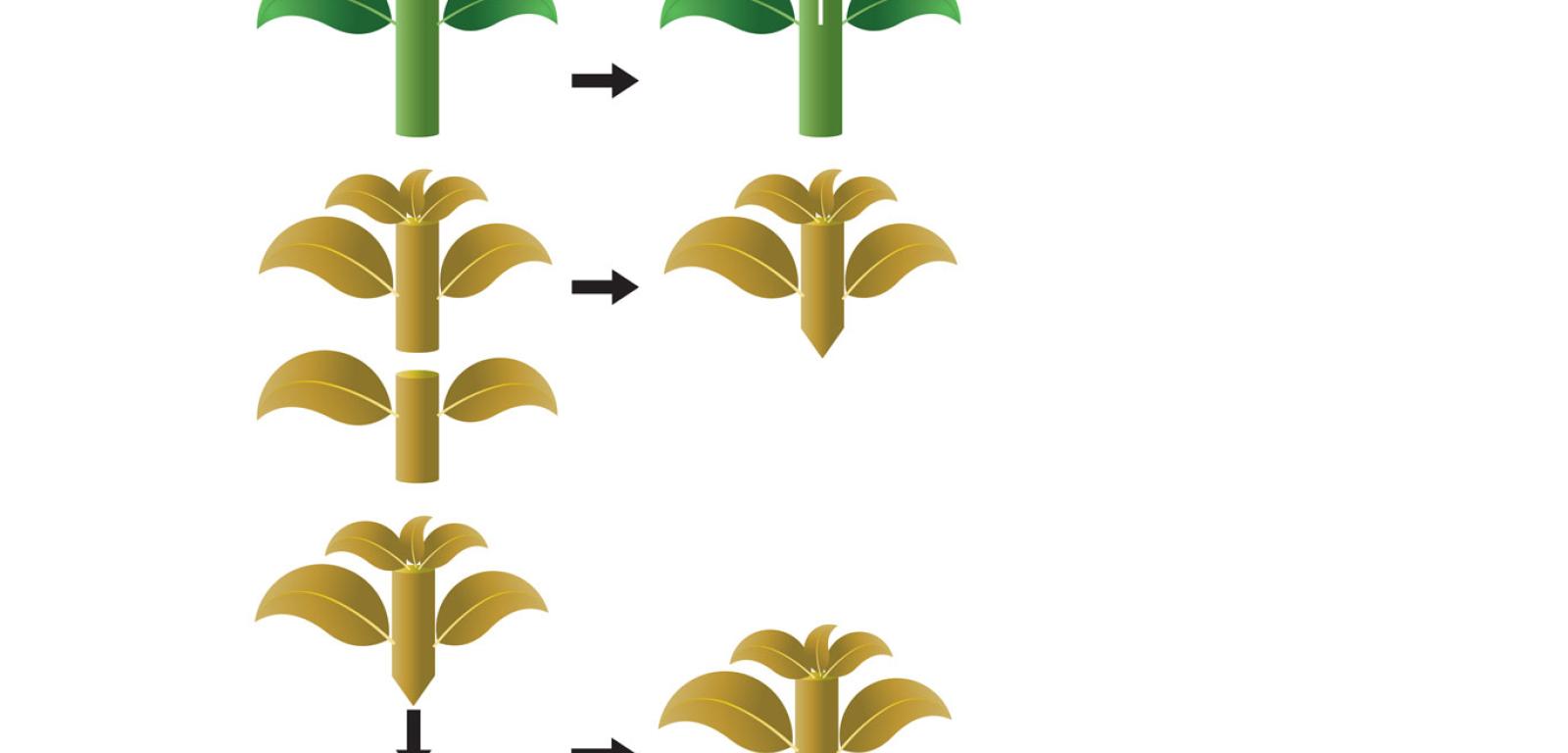 Do doświadczenia wybierz dwie odmiany koleusa (lub trzykrotki) różniące się barwą liści. Odetnij i wyrzuć wierzchołek jednego osobnika, a pozostawiony pęd natnij wzdłuż na długości około 1 cm. Odetnij wierzchołek drugiego osobnika (pęd powinien mieć przynajmniej trzy liście) i za pomocą dwóch cięć nadaj łodyżce odciętego pędu kształt szpicy. Teraz zaostrzony pęd drugiego osobnika (zrazu) wprowadź w nacięcie osobnika pierwszego (podkładki). Ciasno obwiąż miejsce paskiem folii spożywczej (uważaj, by nie zmiażdżyć tkanek), tak aby obszar połączenia był sztywny.