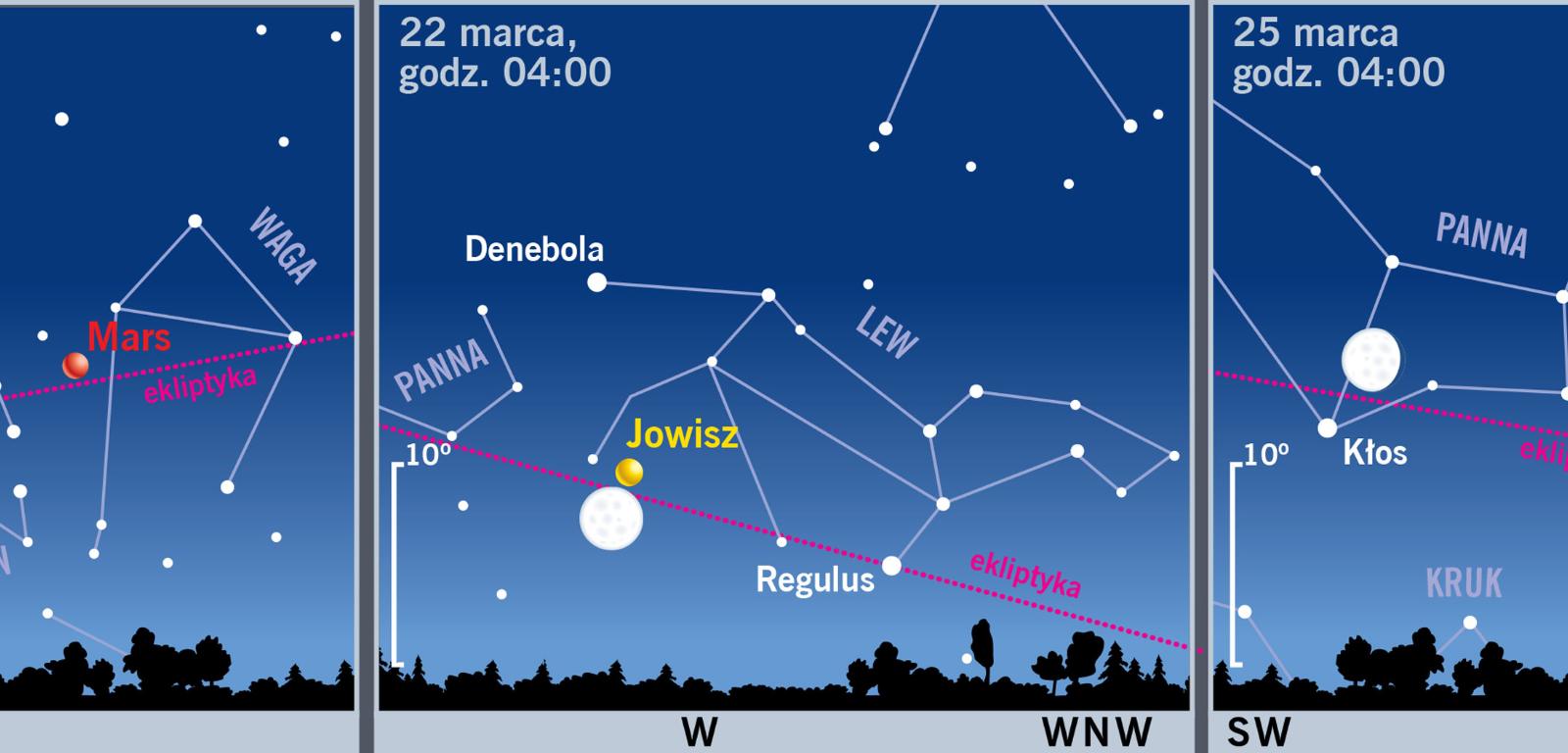 Osoby podatne na wywołaną niedostatkiem światła depresję sezonową oddychają z ulgą: dzień ostatecznie zwycięża noc 20 marca o 5:30, wraz z początkiem astronomicznej wiosny. Od tej pory dni stają się wreszcie dłuższe od nocy. Na początku miesiąca Słońce wschodzi o 6:22 i znika za horyzontem o 17:16. 31 marca obie te pory przesuwają się do 6:13 i 19:09. Maksymalna wysokość Słońca nad horyzontem rośnie w marcu od 30,4° do 42,2°. Choć Słońca jest coraz więcej, mieszkańcom części naszego globu zniknie ono w ciągu dnia – jednak tylko na krótko.