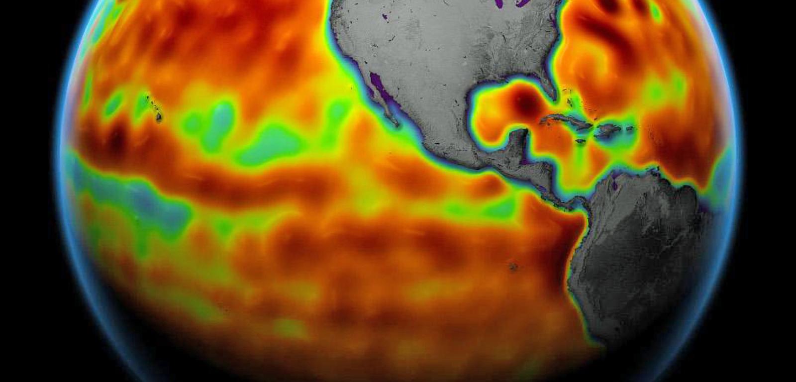 Poziom wody w oceanach mierzony przez satelitę Sentinel-6 Michael Freilich od 5 do 15 czerwca. Kolor czerwony oznacza regiony, w których jest on wyższy niż przewidywano. Topnienie lodowców na Grenlandii i na Antarktydzie może sprawić, że całkowity przyrost poziomu wód do 2100 r. wyniesie nie 30, a 60 cm.