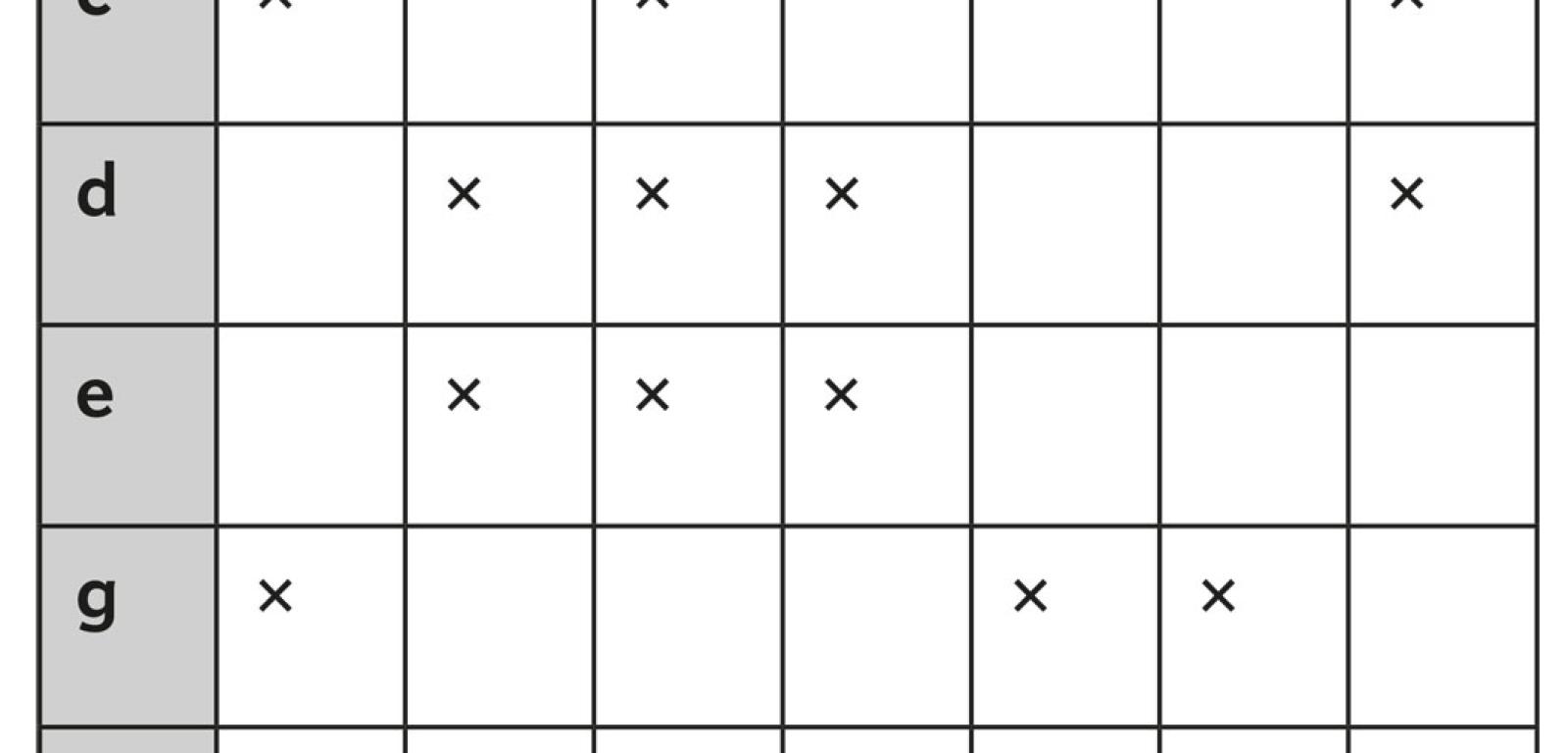 Końcowym etapem jest przyporządkowanie cyfr od 0 do 6 literom b, c, d, e, g, h, i. W tym celu przyda się poniższa tabelka.