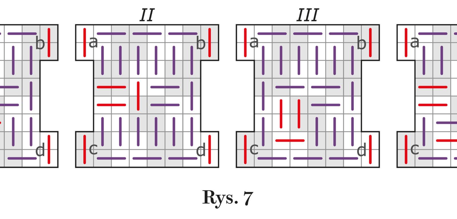 2. Przed półwieczem miłośnicy dominowych łamigłówek zaczęli tworzyć kwadryle z otworami. Jeden z najciekawszych, bo symetrycznych układów znajduje się na rys. 12. Ile ma różnych rozwiązań?