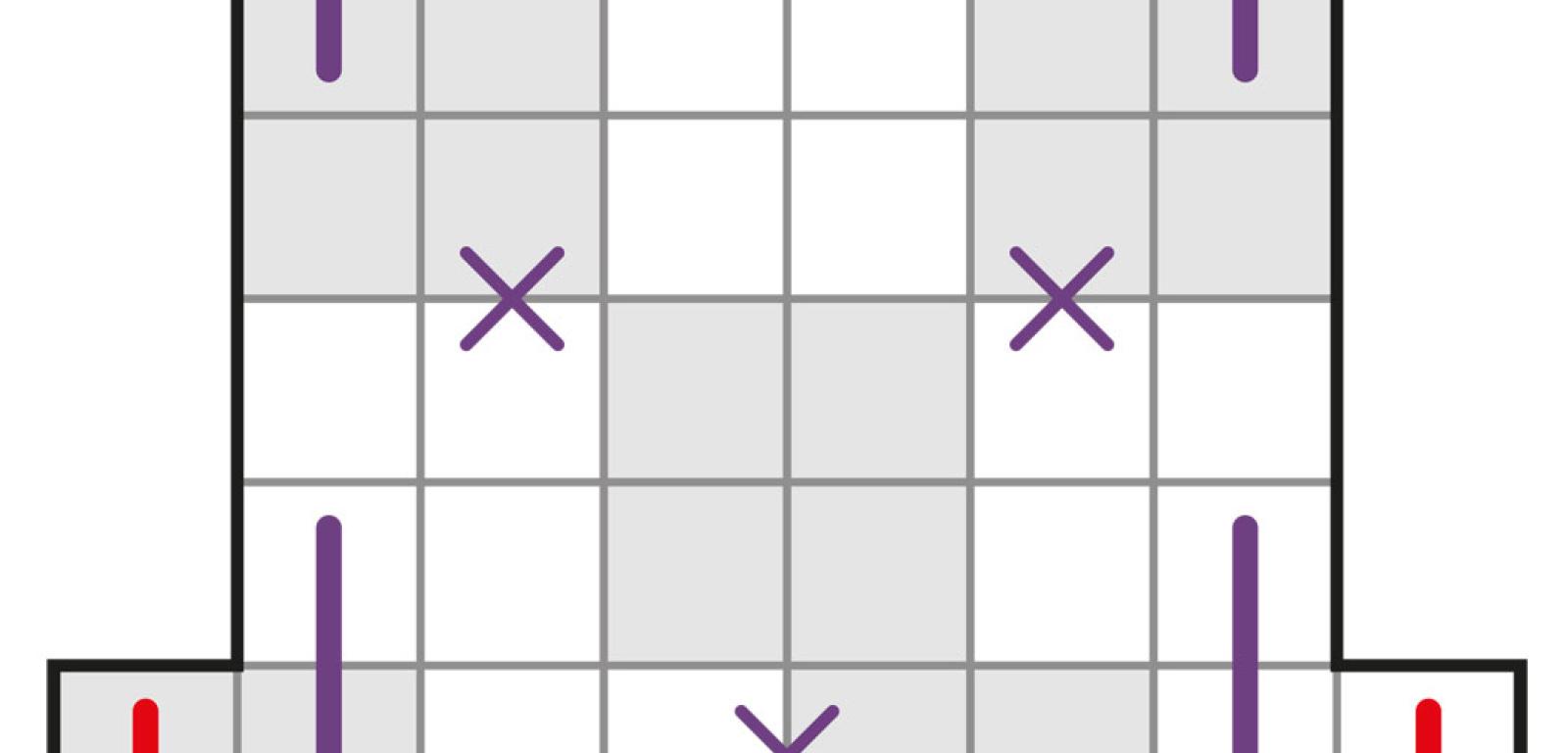 Podstawą logicznego wnioskowania są, jak poprzednio, dwie cechy kompletu: nie ma dwóch identycznych kamieni, a dubletów jest siedem. I w tym przypadku właśnie od dubletów warto zacząć, oznaczając miejsca, w których muszą się one pojawić.