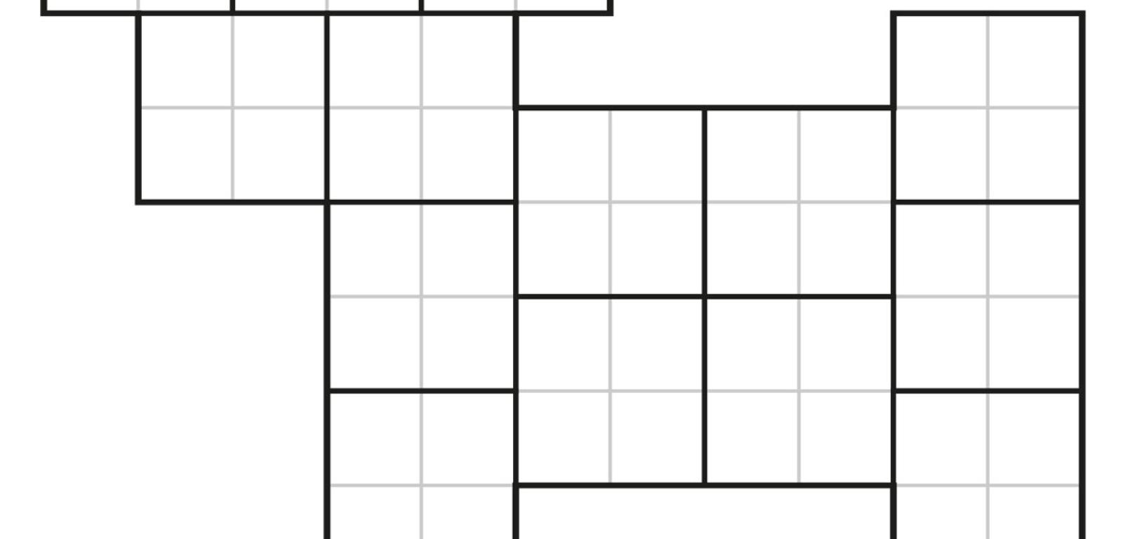 (2) każda para komórek jednoimiennych (z taką samą cyfrą x) powinna w sumie sąsiadować bokami z co najmniej sześcioma komórkami, w tym dokładnie z sześcioma z różnymi cyframi innymi niż x.