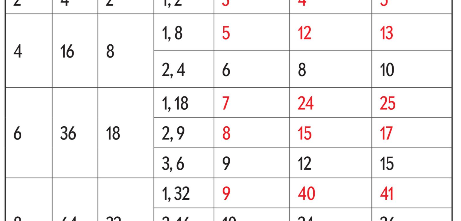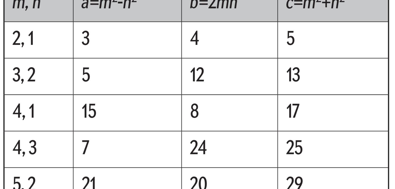 Trójki pitagorejskie gościły już w tej rubryce przed kilkoma miesiącami, ale warto do nich wrócić, bowiem to, co ich dotyczy, wiąże się także z pozostałymi n-tkami. Najistotniejszym zagadnieniem jest generator liczb, który w przypadku trójek ma postać następującej recepty: weź dwie dowolne liczby (m>n), ale względnie pierwsze (bez wspólnego dzielnika większego niż 1), z których jedna będzie parzysta, a druga nieparzysta, i wykonaj trzy działania: