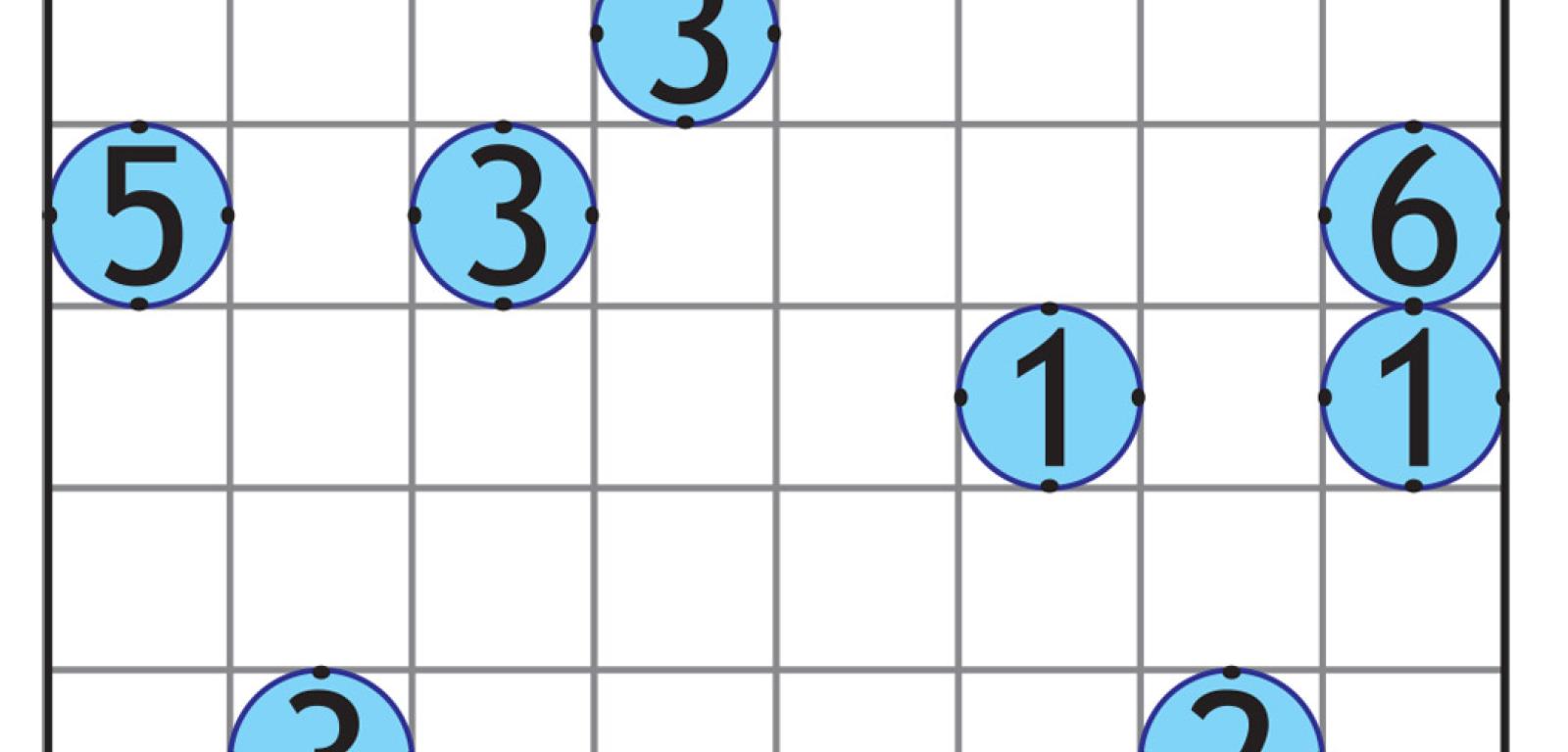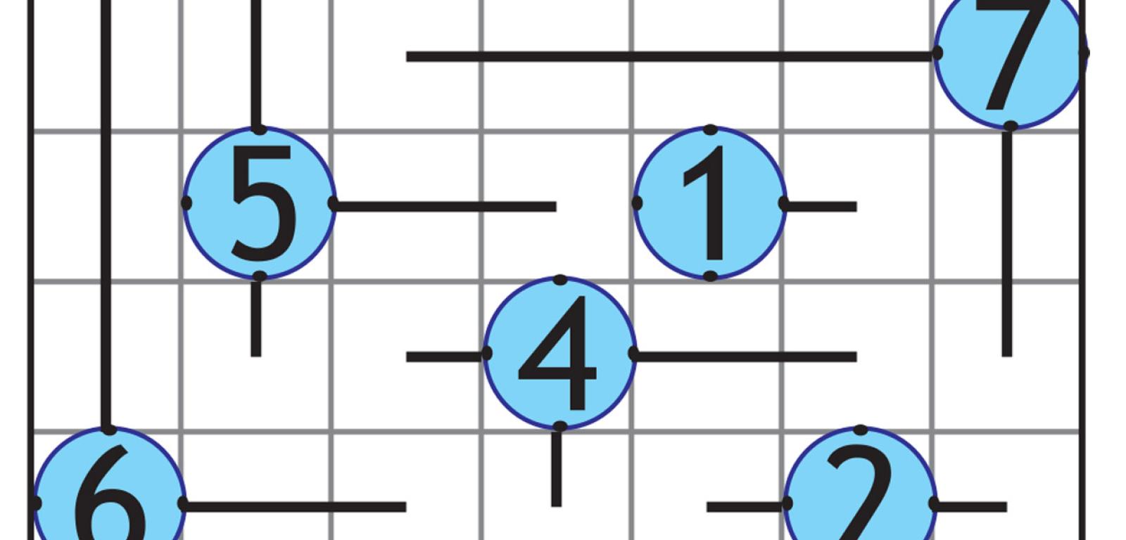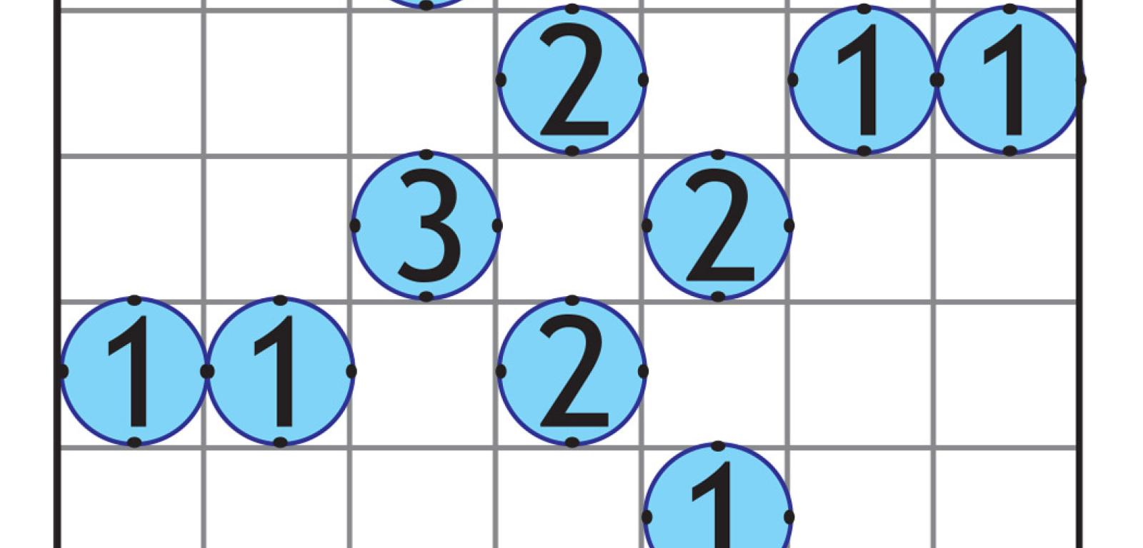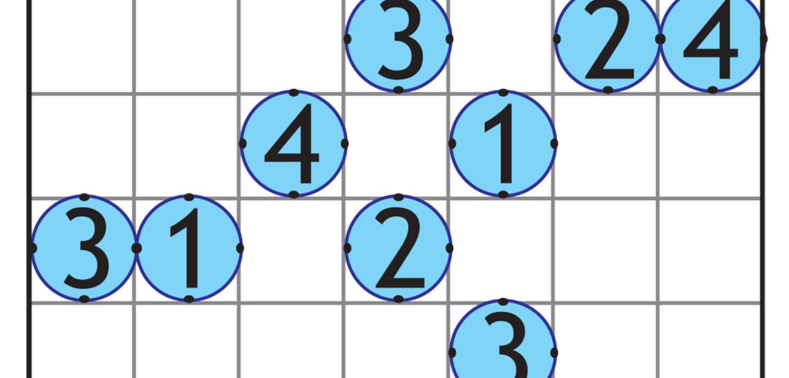 Koliste niebieskie „stworki” w polach diagramu na rys. 1 – nazwiemy je kolikami – mogą wysuwać z czterech punktów na swoim brzegu macki w rzędzie lub kolumnie, czyli w każdym z czterech głównych kierunków. Macka dociera do środka jakiejś kratki, więc jeśli sięga dalej niż do sąsiedniego pola, to po drodze „zalicza” inne kratki. Liczba w koliku oznacza jego moc, a więc łączną moc jego macek, czyli dokładną liczbę pól, które powinny objąć zasięgiem wszystkie jego macki. Zadanie polega na oznaczeniu macek wysuniętych przez wszystkie koliki.