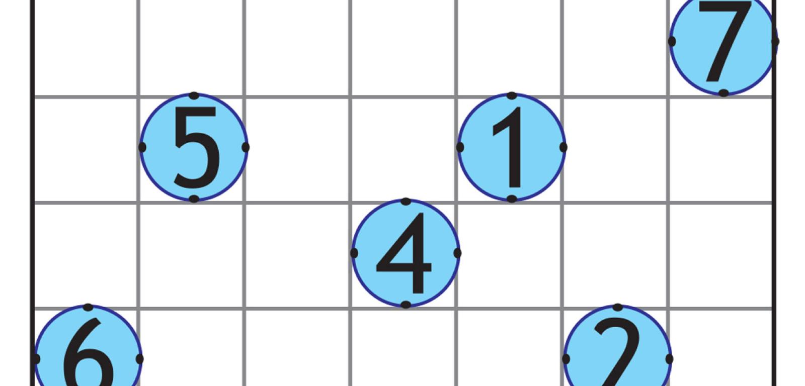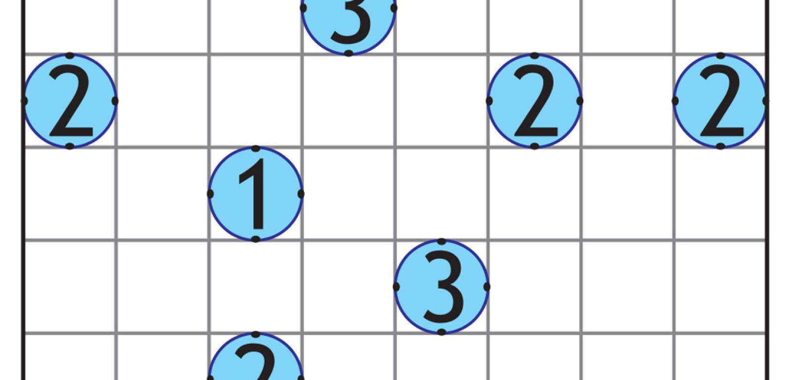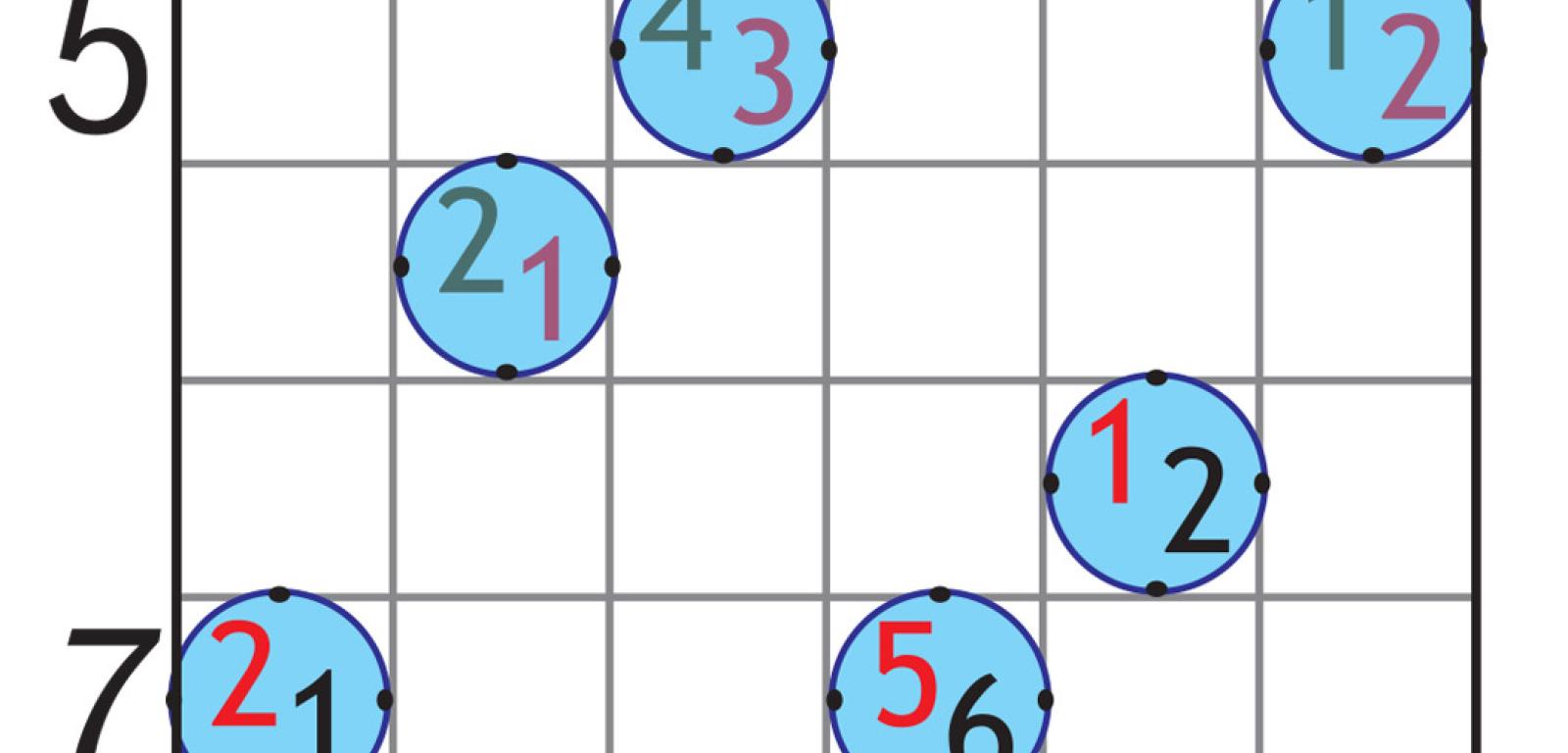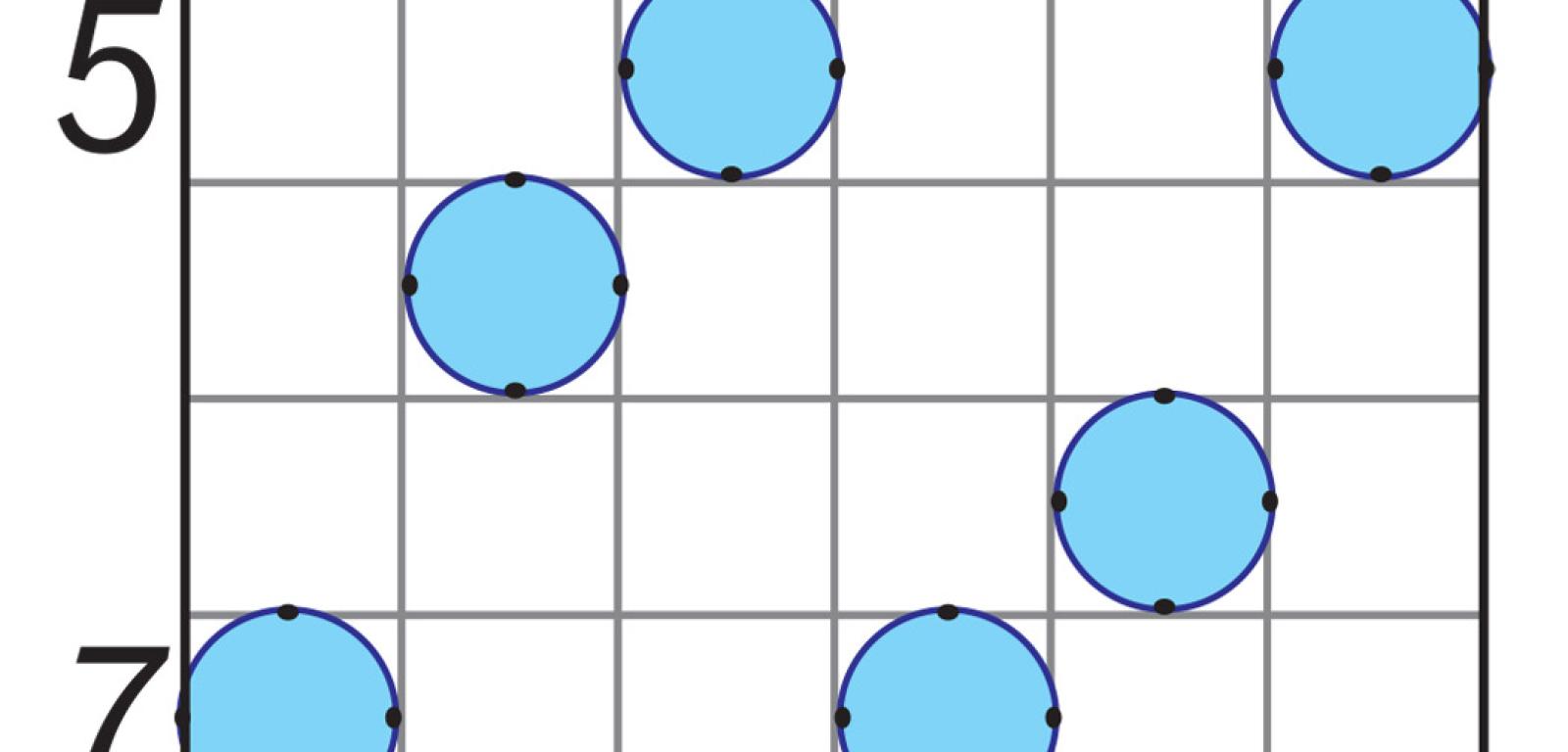 Koliste niebieskie „stworki” w polach diagramu na rys. 1 – nazwiemy je kolikami – mogą wysuwać z czterech punktów na swoim brzegu macki w rzędzie lub kolumnie, czyli w każdym z czterech głównych kierunków. Macka dociera do środka jakiejś kratki, więc jeśli sięga dalej niż do sąsiedniego pola, to po drodze „zalicza” inne kratki. Liczba w koliku oznacza jego moc, a więc łączną moc jego macek, czyli dokładną liczbę pól, które powinny objąć zasięgiem wszystkie jego macki. Zadanie polega na oznaczeniu macek wysuniętych przez wszystkie koliki.