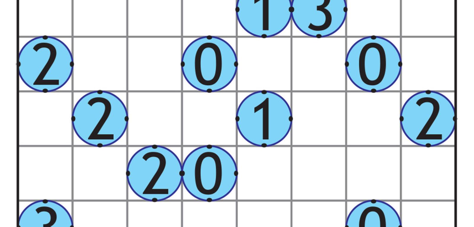 Czy liczby w kolikach mogą oznaczać co innego niż sumaryczną moc wysuwanych przez nie macek? Także w tym zakresie autorzy zadań wykazali się sporą inwencją. Pierwszy pomysł wydaje się bardzo prosty: cyfra w koliku równa jest liczbie wysuwanych macek, czyli możliwości są cztery – 1, 2, 3, 4. Tylko czy to wystarczy do ułożenia ciekawego zadania z jednym rozwiązaniem? Tak, ale po następującym małym uzupełnieniu reguł: jeśli w koliku jest liczba większa niż 1, to wysuwane macki są różnej długości.