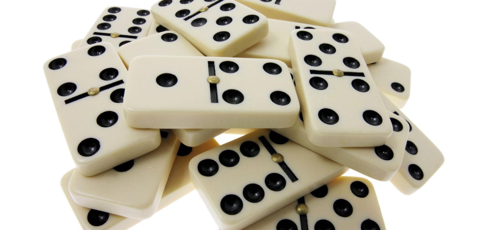 Z kompletu domina (rys. 1; układy kropek zastąpiono cyframi) można wybrać dwa kamienie i ułożyć z nich słupkowe mnożenie lub dodawanie – przykłady na rys. 2a. Ze względu na ograniczony zakres cyfr wszystkich takich mnożeń da się ułożyć dziesięć, a dodawań tylko cztery. Nie więcej także dlatego, że w działaniach wykluczamy liczby zaczynające się zerem, czyli pustą połówką kamienia zwaną mydłem. Nie uwzględniamy więc np. takich działań, jak na rys. 2b.