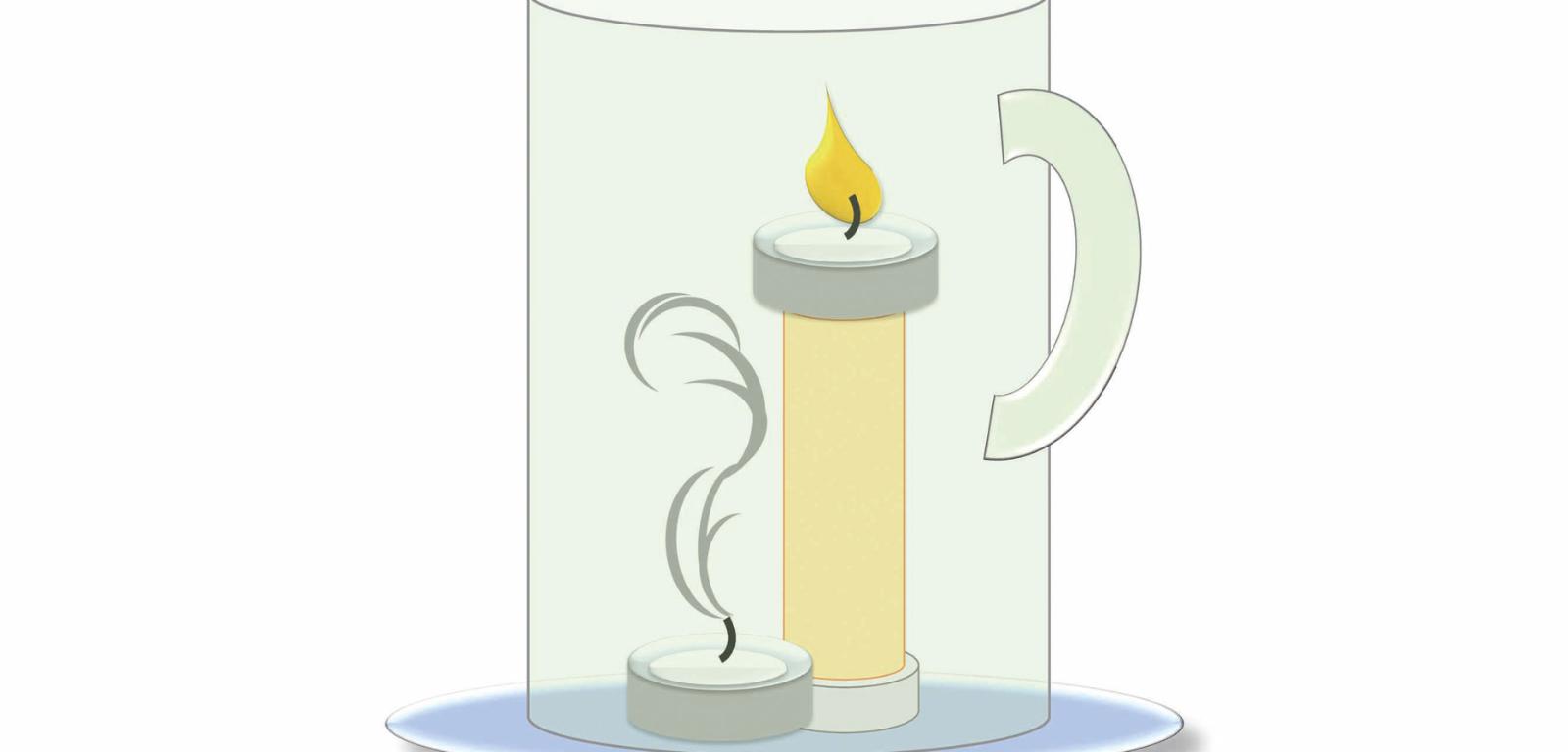 Wyjaśnienie: Paląc się, świeca wytwarza dwutlenek węgla, który jako cięższy od powietrza opada na dno. Gromadząc się przy dnie, wypiera powietrze i zawarty w nim tlen, przez co dolna świeczka gaśnie, podczas gdy górna jeszcze płonie. Zatem wbrew obiegowej opinii to nie brak tlenu, ale nadmiar dwutlenku węgla gasi płomień. Wypełniający naczynie dwutlenek węgla zgasi także górną świecę, zostawiając w powietrzu nawet 17–19% tlenu! Znajduje to zastosowanie w ochronie przeciwpożarowej – gaśnice CO2 (śniegowe) zawierają sprężony skroplony dwutlenek węgla, który uniemożliwia efektywne spalanie i odcina dostęp tlenu, pozwalając na ugaszenie niewielkiego pożaru.
