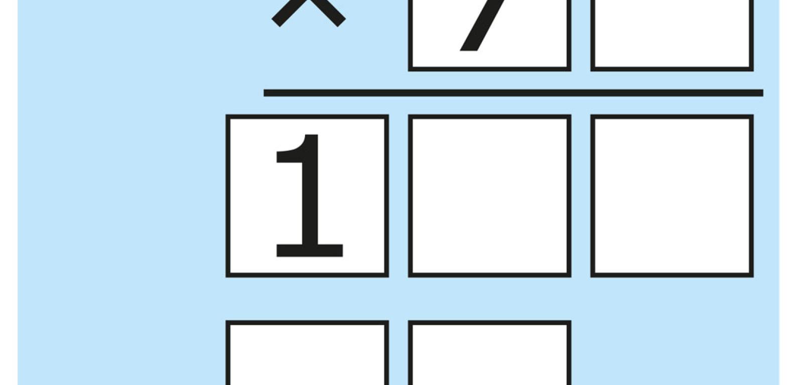 W słupkowym zapisie mnożenia ujawniono trzy cyfry. Pozostałe ukrywają się za pustymi kratkami. Jak wygląda całe mnożenie?
