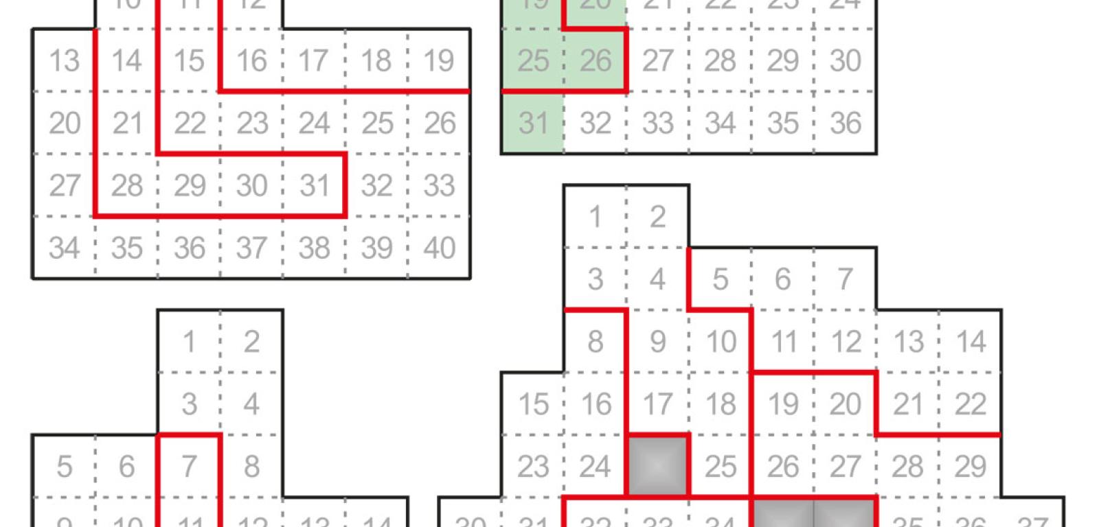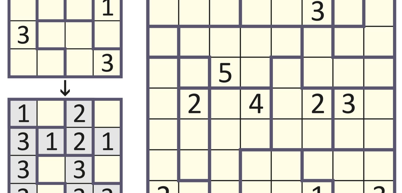 Pokratkowany kwadratowy diagram jest „miejscem akcji” większości współczesnych łamigłówek logicznych, także tej najpopularniejszej, czyli sudoku. Sporą grupę stanowią wśród nich takie, które polegają na dzieleniu diagramu wzdłuż boków kratek na części. Zapewne najbardziej znanymi z tej grupy, uchodzącymi za niemal „klasyczne”, są cztery rodzaje zadań o nazwach, podobnie jak sudoku, japońskojęzycznych, wskazujących na ich pochodzenie – shikaku, fillomino, nurikabe i yin-yang. W regułach dwóch ostatnich występuje specyficzny warunek, obecny także w kilkunastu innych, mniej znanych rodzajach łamigłówek: niektóre lub wszystkie wydzielane części nie mogą zawierać kwadratu 2×2 kratki.