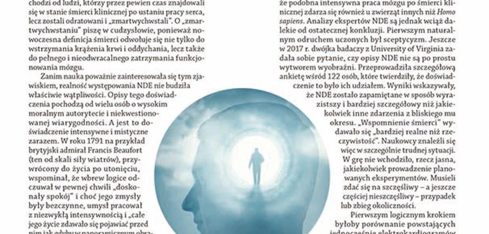 Jestem specjalistą anestezjologii i intensywnej terapii od 40 lat. Chciałbym podtrzymać wątpliwości pana redaktora Krzysztofa Szymborskiego, który w artykule „Wspomnienie śmierci”, dotyczącym NDE, napisał „pierwszym logicznym krokiem byłoby porównanie powstających jednocześnie elektrokardiogramów i encefalogramów, dokonanych in flagranti, czyli w chwili odwracalnej śmierci”, dodając za chwilę, że „dotychczas takich danych brak”. Słusznie, bo istotą dociekań na temat NDE jest jednoczasowość opisywanych fenomenów przez „tych, co wrócili z zaświatów” z momentem śmierci klinicznej.