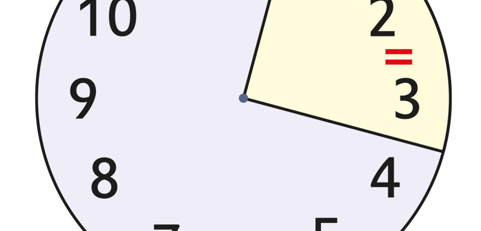 Mniej znana zegarodzielna zabawa liczbowa wiąże się nie tyle z dzieleniem, ile z wycinaniem. Polega na oznaczaniu na tarczy wycinka kołowego, zawierającego przynajmniej trzy liczby i próbie utworzenia działania arytmetycznego, obejmującego te liczby bez zmiany ich kolejności. Najprostszy przykład to wycinek [1, 2, 3] (rys. 9), umożliwiający działanie 1+2=3. Dozwolone jest korzystanie tylko ze znaków czterech podstawowych działań oraz nawiasów, a ostatnia liczba powinna być wynikiem poprzedzonym oczywiście znakiem równości. Ponadto sąsiednie liczby wolno łączyć, tworząc dłuższe z krótszych, ale dwucyfrowych nie wolno rozdzielać. Dla wycinka [1, 2, 3, 4] rozwiązaniem jest więc działanie 12:3=4, ale nie –1+2+3=4, bo minus przed jedynką nie jest znakiem działania. Inny przykład: 6×(7+8):9=10. Większość małych wycinków nie ma rozwiązań, na przykład [12, 1, 2], a te z dużym kątem środkowym są zwykle twardymi orzechami. Jeden z nich – ekstremalny – jest zadaniem konkursowym.