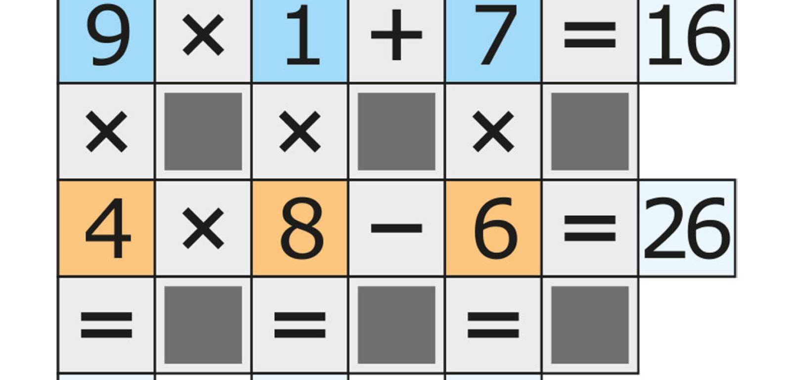 „Szkielet” ten należy zmienić w pełne, poprawne działanie w opisany wyżej sposób (dotyczący wycinka kołowego), czyli umieszczając znaki działania (+, –, ×, :) i nawiasy między liczbami oraz tworząc liczby dwu- i więcejcyfrowe przez łączenie krótszych liczb. Dodanych znaków (w tym nawiasów) i utworzonych liczb powinno być w sumie jak najmniej. Ponadto należy wykorzystać każdy z czterech znaków działania. Za poprawne będą uznane działania, w których suma ta będzie nie większa niż 17 (możliwe są rozwiązania z mniejszą sumą).