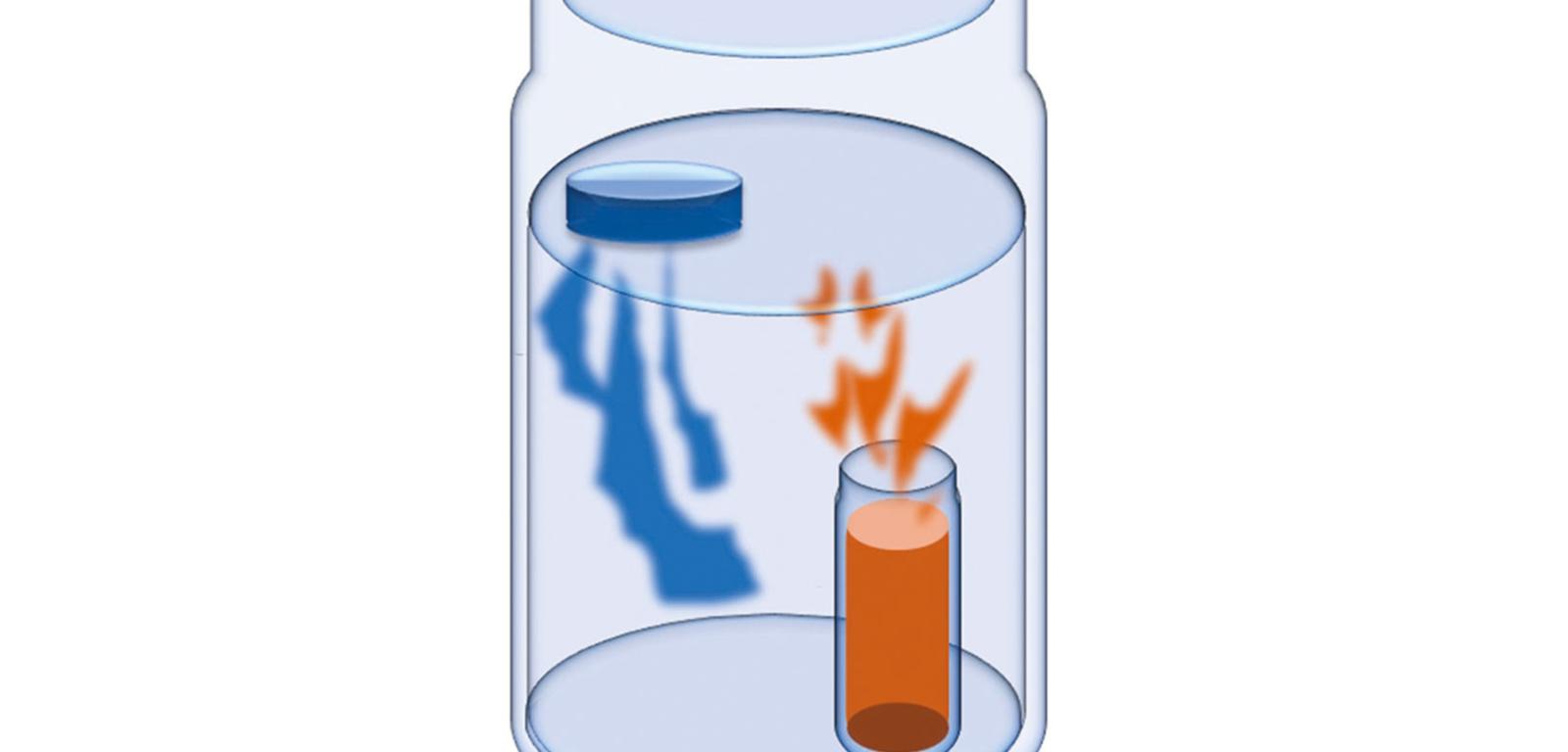 Do litrowego słoja włóż świeczkę podgrzewacz, zapal ją i ustaw blisko jednej ze ścianek. Z zewnętrznego termometru okiennego zdejmij plastikowe końcówki i wyciągnij kartonik z podziałką, a uzyskaną szklaną rurkę opłucz zimną wodą. Rurka nie może być za krótka – jej długość powinna wynosić co najmniej tyle, ile wysokość słoja. Rurkę wprowadź do słoja tak, aby końcówka znajdowała się blisko dna, ale po przeciwnej stronie niż świeczka. Od góry włóż do rurki zapalone kadzidełko na głębokość 5–10 cm. Obserwuj dym z kadzidełka. Wypróbuj różne położenia kadzidełka i ustawienia rurki. Opcjonalnie – z folii aluminiowej zrób przegródkę dzielącą wnętrze słoika na dwie części (zostaw szparę przy dnie), a świeczkę umieść z jednej strony.