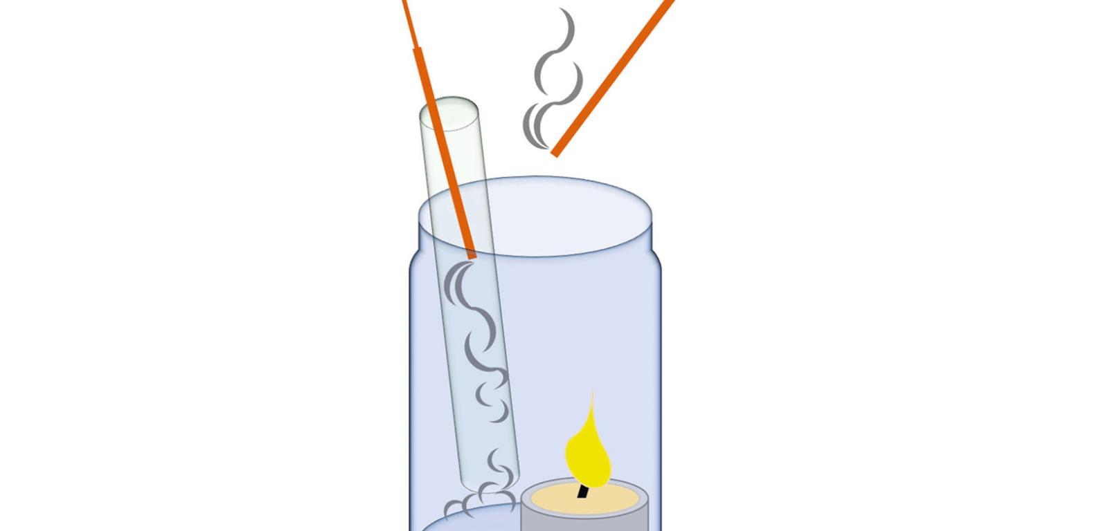 Wyjaśnienie: Płomień świecy rozgrzewa powietrze i wydziela gorące gazy, które unoszą się ku wylotowi słoika. Z tego samego powodu unosić się będą cząstki dymu z tlącego się kadzidełka. Rurka lub przegródka z folii tworzą kanał, którym w miejsce uciekającego gorącego powietrza napływa zimne powietrze spoza słoika – dym z kadzidełka, zamiast unosić się do góry, jest zasysany przez rurkę (zwilżona wolniej się nagrzewa) ku dnu słoika. Zwiedzając sztolnie XIX-wiecznych kopalni, można zobaczyć zastosowanie tego efektu – specjalne kominki, w których palono, by napędzać cyrkulację powietrza i zasysanie powietrza z powierzchni przez inne pionowe szyby, co pozwalało na przewietrzanie kopalni. Bez takich kominków górnicy szybko udusiliby się z nadmiaru dwutlenku węgla.