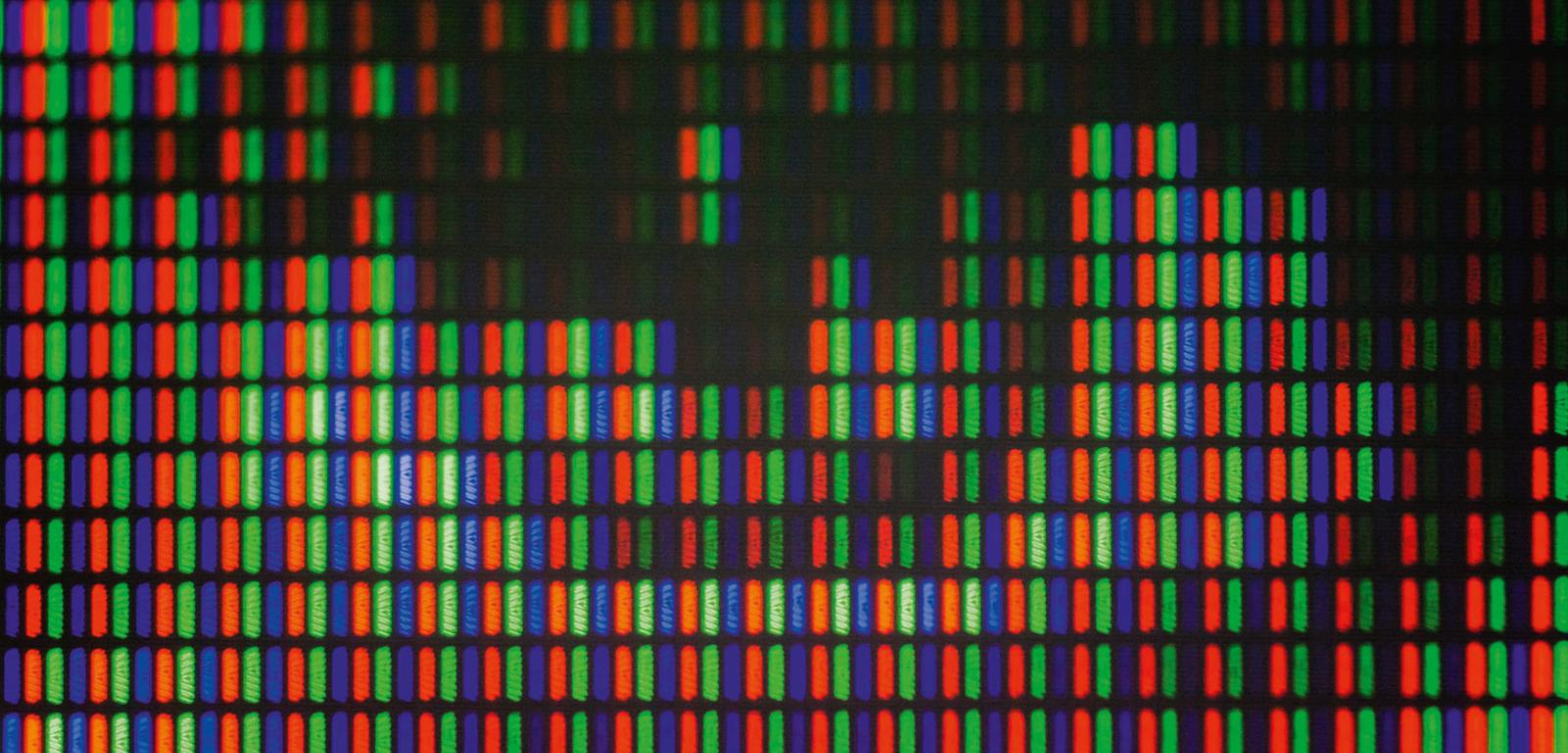 Wyjaśnienie: Kolorowy wyświetlacz podzielony jest na piksele, a każdy z nich stanowi zestaw trzech kolorowych „latarek” – czerwonej, zielonej i niebieskiej. Gdy dwie z nich gasną, widzimy trzeci kolor. Gdy tylko przygasają, dochodzi do addytywnego mieszania się barw zgodnie z przestrzenią RGB (red, green, blue). Widać je pod lupą.