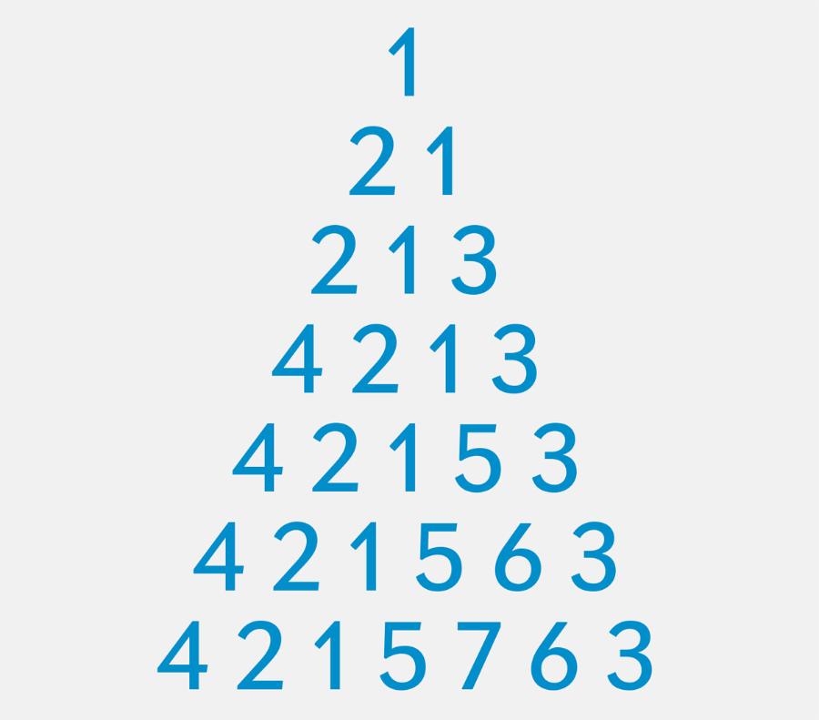 Liczby tworzą trójkątny układ zgodnie z pewną zasadą. Jak powinien wyglądać następny rząd liczb?