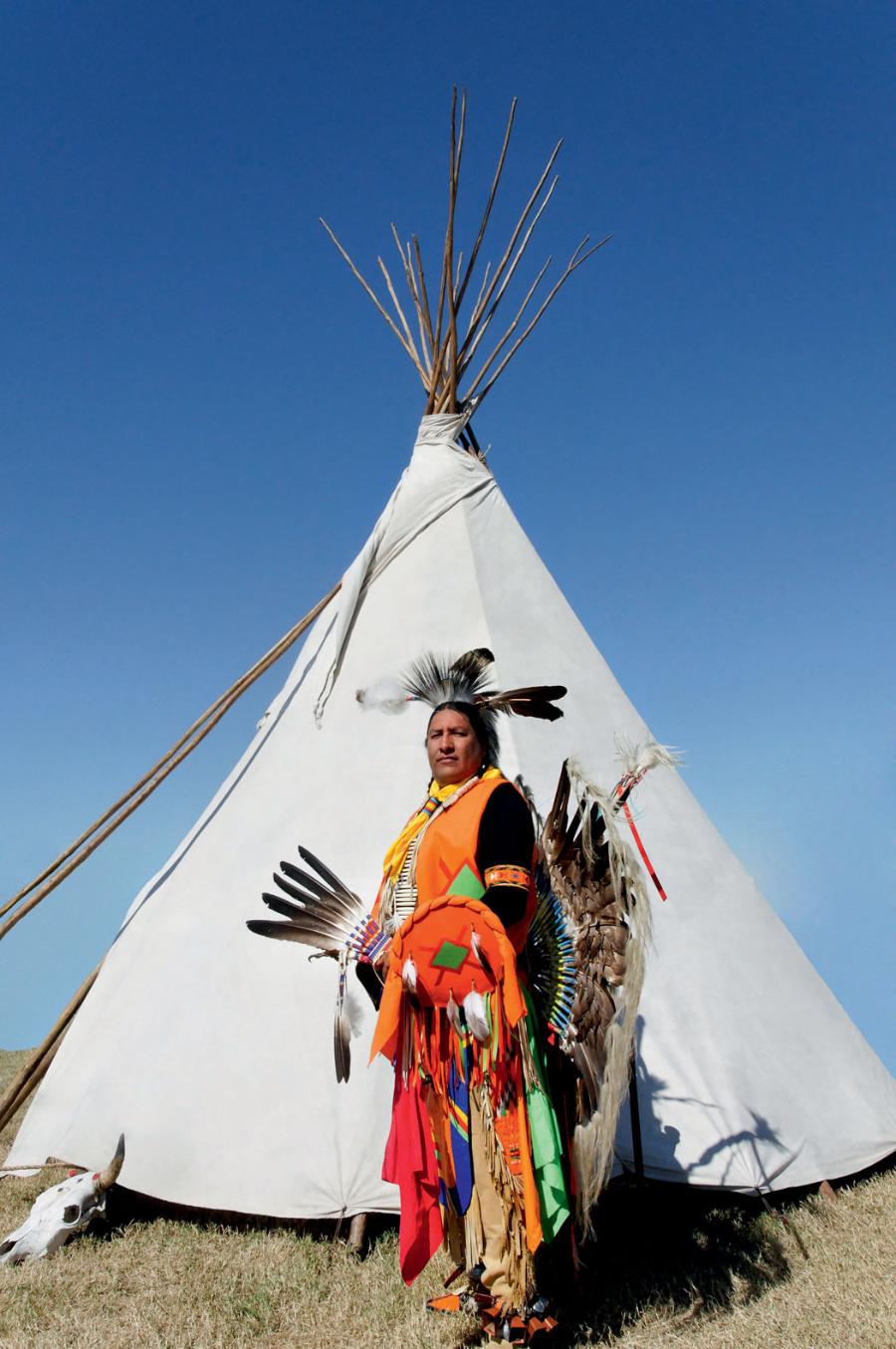 Taka konstrukcja zbliża ich już do ludów koczowniczych czy plemion indiańskich, zamieszkujących Amerykę Północną, które przenosiły się przynajmniej dwa razy w roku – przede wszystkim wędrując za stadami zwierząt, głównym źródłem pożywienia. Gdy Indianie przybywali na miejsce osiedlenia, to kobiety rozstawiały tipi. Najpierw mocowały w ziemi żerdzie (w czasie wędrówki służące za ciągnięte przez psy lub konie tragi czy włóki, do których mocowano skóry, wyposażenie, a także… dzieci, żeby nie pogubiły się w ogólnym zamęcie), następnie rozpinały na nich wykonane głównie ze skór bizonów pokrycie. Skóry zszywano tak, żeby tworzyły półkole. Była to tak praktyczna konstrukcja, że przejęły ją amerykańskie wojska i stosowały podczas wojny secesyjnej. Zaletą tipi było to, że stosunkowo duża średnica okręgu (ok. 6 m) wyznaczonego przez drągi umożliwiała rozpalenie w środku ogniska (wywietrznik był przysłaniany i odsłaniany za pomocą żerdzi w zależności od potrzeb).