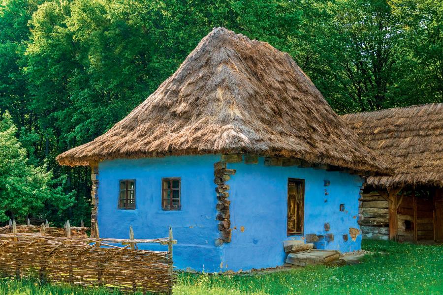 Bo chaty budowano najczęściej z bali (na Ukrainie można jeszcze zobaczyć konstrukcje z wikliny), a dachy kryto strzechą (ze słomy żytniej lub trzciny) albo – w wersji bogatszej – gontem. Kurna chata nie miała komina, a dym z paleniska uchodził poprzez otwór w najwyższym punkcie dachu. Konstrukcje te, właściwe dla naszych terenów, składały się najczęściej z trzech izb: sieni i dwóch bocznych – czarnej (z piecem) i białej (gościnnej). Czasami pojawiała się w nich jeszcze komora, czyli magazyn. Bogatsi chłopi mogli też wydzielić sobie alkierz, czyli pomieszczenie służące za sypialnię. Najbiedniejsi mieszkali w lepiankach.