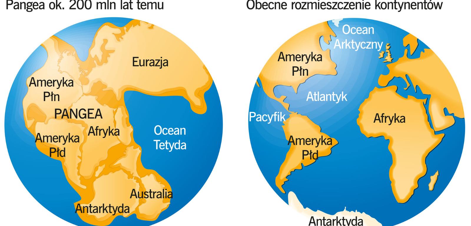 „Pasują do siebie jak ulał” – pomyślał Alfred Wegener, spoglądając na mapę. Afryka z Ameryką Południową wyglądały tak, jak gdyby jakaś gigantyczna siła rozdzieliła w przeszłości jeden kontynent, a jego kawałki rozsunęła. Nie był pierwszą osobą, która to dostrzegła, ale mając multidyscyplinarne wykształcenie (dyplomy z meteorologii, fizyki i doktorat z astronomii), przyglądał się dokładnie dziwnemu podobieństwu z wielu stron. Wyszukał je we florze i faunie, zarówno tej żyjącej, jak i kopalnej, na oddalonych od siebie lądach, znajdował pokrewieństwo w przebiegu warstw skalnych. Zwrócił też uwagę na pokłady węgla występujące na Spitsbergenie. „Jakim cudem utworzyły się w tym surowym klimacie? A może po prostu przywędrowały z południa?” – zastanawiał się. Był początek XX w. i w umyśle Wegenera zaczęła kiełkować szokująca na owe czasy hipoteza: wymyślił jeden wspólny kontynent, który miał z czasem rozpaść się na kawałki, a te zaczęły przemieszczać się w różne strony.