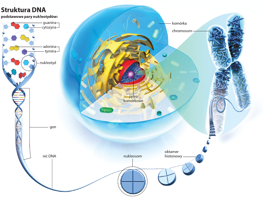 Wtedy nazwa jednostki dziedziczenia – gen – nie była jeszcze znana. Duńczyk Wilhelm Johannsen wymyślił ją dopiero w 1909 r. W ten sposób nominalnie dał początek genetyce. Podwaliny pod nowoczesną genetykę stworzył natomiast Amerykanin Thomas Hunt Morgan. Badając rozwój muszki owocowej, udowodnił, że geny ułożone są liniowo w zawartych w jądrze komórkowym strukturach zwanych chromosomami. Mimo tej wiedzy ciągle nie było jednak wiadomo, jaki związek chemiczny zawiera zapis informacji genetycznej – bo chromosomy zbudowane są zarówno z DNA, jak i z białek. Spekulowano, że nośnikiem genów są raczej białka, bo składają się aż z 20 różnych aminokwasów, których układ może być bardzo różnorodny, a DNA tylko z czterech różnych zasad azotowych (budujących wraz z cukrem dezoksyrybozą i grupami fosforanowymi, nukleotydy, czyli cząsteczki składowe DNA).