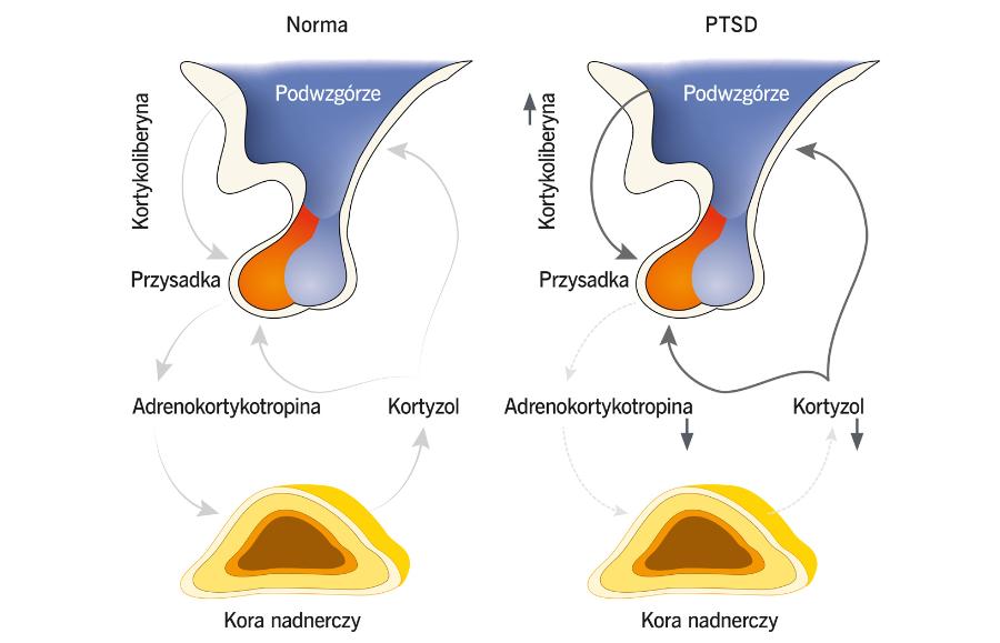 Rozplątywanie zagadki traumy, kortyzolu i PTSD zajęło badaczom kolejne dziesięciolecia. W klasycznej odpowiedzi walki lub ucieczki, zidentyfikowanej w latach 20. XX w., zagrożenie uwalnia hormony stresu takie jak adrenalina i kortyzol. Przyspieszają one np. puls i wyostrzają zmysły, aby zagrożona osoba mogła skupić się na uniknięciu niebezpieczeństwa. Uważano, że symptomy te zanikają po ustąpieniu zagrożenia. Jednak Allan Munck z Geisel School of Medicine w Dartmouth zauważył w 1984 r., że wśród hormonów stresu kortyzol odgrywał specyficzną regulacyjną rolę. Jeśli wysokie poziomy hormonów stresu utrzymują się długo, szkodzą organizmowi na wiele sposobów, osłabiając układ odpornościowy i zwiększając podatność na takie problemy jak nadciśnienie. Ale podczas ostrej traumy kortyzol paradoksalnie miewa także efekt ochronny. Zatrzymuje uwalnianie hormonów stresu – w tym samego siebie – zmniejszając potencjalne szkody dla narządów, w tym mózgu.