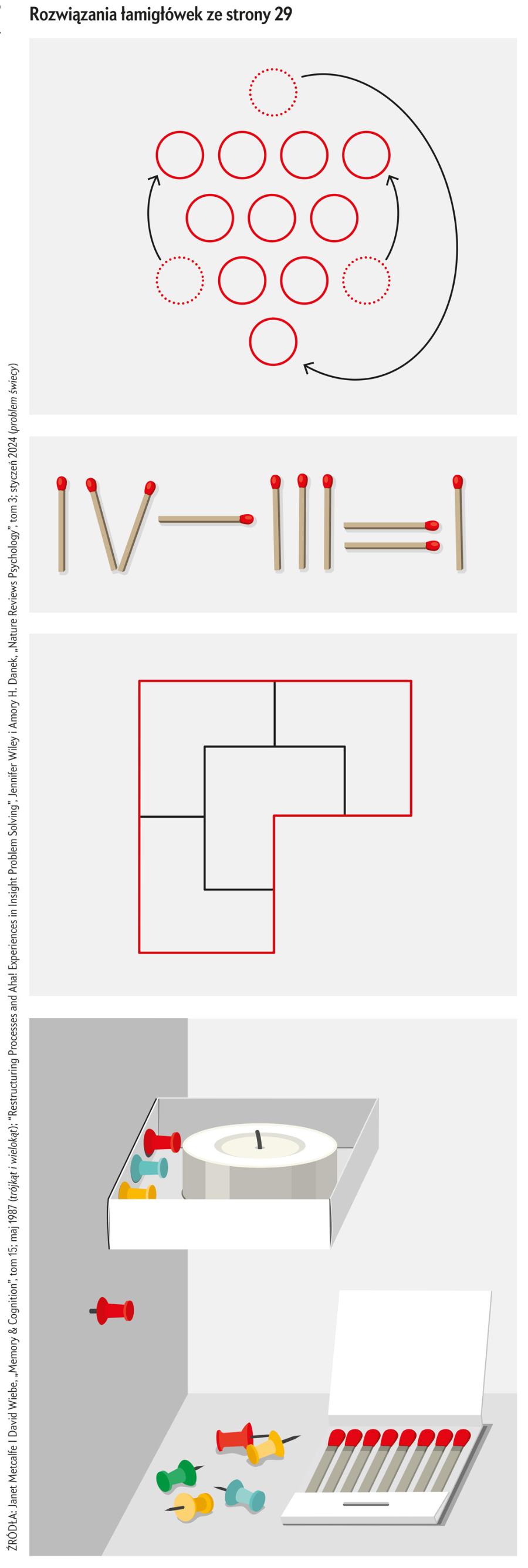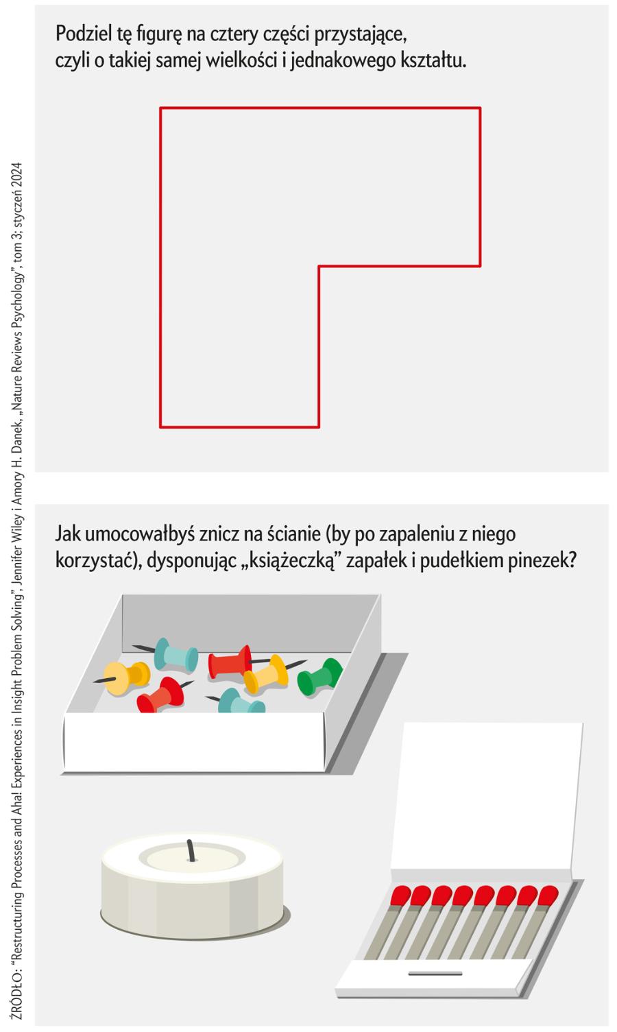 Późniejsze badania wykazały jednak, że momenty „aha!” mogą aktywować także inne obszary mózgu – w zależności od rodzaju łamigłówki. W 2020 roku wykazaliśmy, że wglądy związane z reorganizacją wzorców aktywują płat czołowy, a nie prawy płat skroniowy. Do takich problemów należy anagramowanie (np. przestawianie liter w zbitce BELAT, by utworzyć słowo TABLE). Cechą wglądu jest zatem nagły impuls aktywności fal mózgowych o wysokiej częstotliwości, który może wystąpić w różnych częściach mózgu – zależnie od typu rozwiązywanego problemu.