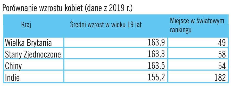 Wiadomo nie od dziś, że różnice wysokości ciała związane są z nierównościami społecznymi. To, co było regułą kiedyś (arystokracja wysoka, chłopstwo niskie), współcześnie także jest widoczne nawet w krajach o wysokim PKB, w których występuje duża rozbieżność między dochodami. Gdy w 2019 r. oceniano wzrost ponad 37 tys. dzieci w wieku od 4 do 6 lat z pięciu zamożnych krajów – Stanów Zjednoczonych, Wielkiej Brytanii, Australii, Niderlandów i Szwecji – okazało się, że tam, gdzie nierówności społeczne były największe (Stany Zjednoczone, Wielka Brytania), odnotowano także największe różnice średniej wysokości ciała. Ale maluchy w Niderlandach i Szwecji były wyższe w każdej grupie, wydzielanej na podstawie kryterium poziomu edukacji i dochodów rodziców, niż dzieci w pozostałych trzech krajach. Zatem nierówności w rozwoju mogą być też spowodowane przez czynniki stresogenne (np. niższa warstwa społeczna, dłuższe godziny pracy rodziców). Kraje, w których panuje większa równość, zazwyczaj oferują programy socjalne zmniejszające takie obciążenia – konkludują autorzy pracy firmowanej przez brytyjskie stowarzyszenie Royal College of Paediatrics and Child Health.