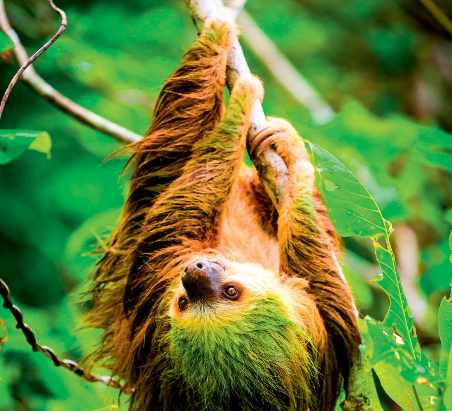 Chrząszcze i ćmy – lokatorzy z królestwa zwierząt – zamieszkują futro leniwca. Jednak jego zielone zabarwienie, będące jednocześnie kamuflażem, jest efektem obecności glonów z rodzaju zielenic, głównie Trichophilus welckeri. Cały ten mikrobiom futra, włączając pasożyty i grzyby, jest przekazywany bezpośrednio od matki do potomstwa. Ponadto powolne ruchy leniwców zapobiegają utracie glonów, które swobodnie rozrastają się na powierzchni sierści zwierzęcia. Zazielenić też może się futro niedźwiedzia polarnego, które zwykle jest kremowobiałe. Taki efekt spotyka się zwykle w zoo, gdyż w Arktyce temperatura jest zbyt niska dla glonów. Zwykle otarcia o betonowe elementy wybiegu tworzą maleńkie dziury we włosach, będące bramą dla jednokomórkowych organizmów, m.in. fotosyntetyzujących sinic z rzędu Chroococcales, które mogą żyć i rozmnażać się w ich wnętrzu. Z kolei czerwone narośla na futrze wydr to krasnorosty, które zwykle rosną na skałach lub wolno poruszających się zwierzętach, takich jak ślimaki. Co ciekawe, w oświetleniu UV te czerwone glony (m.in. Acrochaetium secundatum) świecą jaskrawopomarańczowym kolorem.