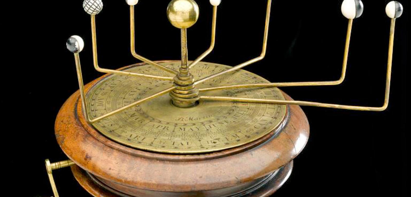 Miniaturowy model planetarny z połowy XVIII w. Został wykonany przez wytwórcę instrumentów Benjamina Martina. Pokazuje ruchy Ziemi, Księżyca i planet wokół Słońca. Stał się popularny po opublikowaniu przez Sir Isaaca Newtona teorii grawitacji. Fot. Science Museum Group