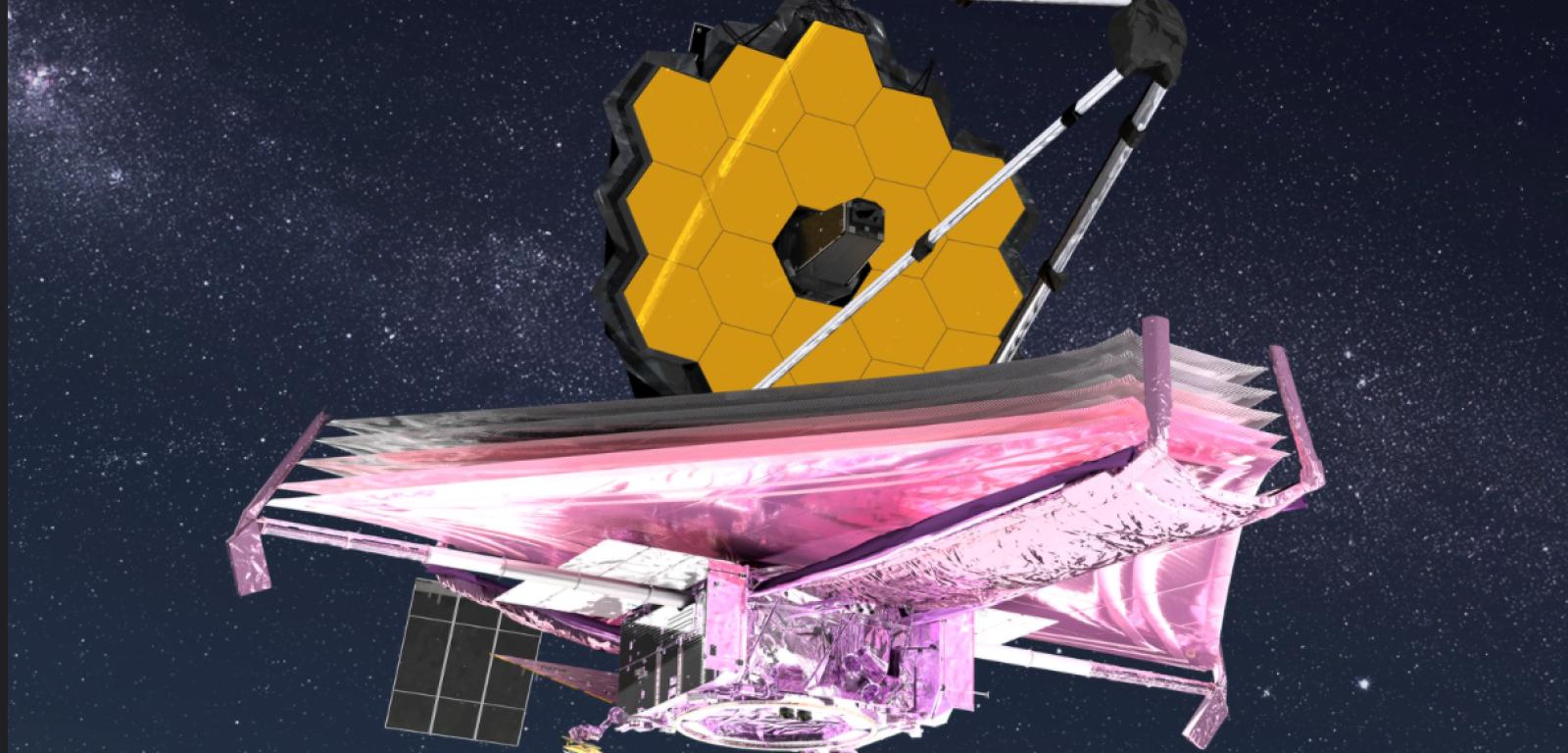 Celem najambitniejszego dotąd teleskopu kosmicznego jest badanie Wszechświata oczami czułymi na podczerwień. Konstrukcja kosztującego 10 mld dolarów Kosmicznego Teleskopu Jamesa Webba (James Webb Space Telescope; JWST) umożliwia sięganie w przestrzeń i czas głębiej niż kiedykolwiek wcześniej – w obszary, w których ekspansja Kosmosu rozciągnęła fale elektromagnetyczne do znacznie większych długości. Aby zarejestrować tak słabe promieniowanie, teleskop musi znajdować się daleko od Ziemi i emitowanych przez nią światła i ciepła. Po wystrzeleniu JWST rozpoczął lot o długości 1,5 mln kilometrów do ziemskiego drugiego „punktu Lagrange’a” (L2) – miejsca w kosmosie, w którym siły grawitacyjne naszej planety i Słońca mniej więcej się równoważą, tworząc stabilną pozycję orbitalną. W tym punkcie obserwacyjnym orbitować będzie JWST. Gigantyczna osłona przeciwsłoneczna zablokuje promieniowanie Słońca, Ziemi i Księżyca, utrzymując teleskop w lodowatej temperaturze –220°C.