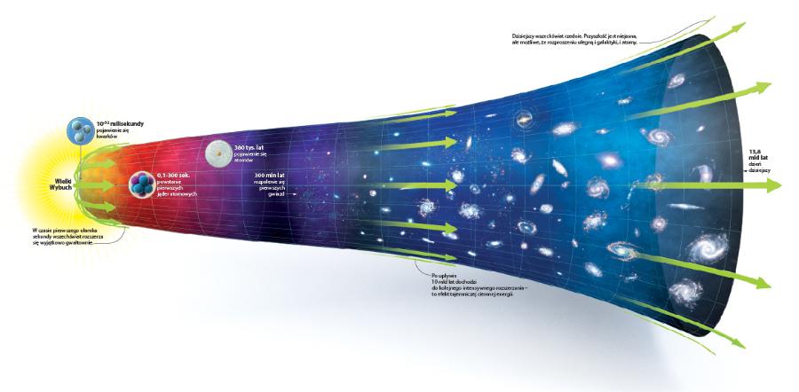 Trudno dziś znaleźć osobę, która nie słyszałaby o Wielkim Wybuchu. W błędzie są jednak ci, którzy uważają, że teoria ta dotyczy początku, czy wręcz stworzenia wszechświata. Jest ona tylko naukowym modelem, który pozwala prześledzić ewolucję kosmosu od pewnej chwili w dalekiej przeszłości po jeszcze bardziej odległą przyszłość. Dzięki niemu możemy połączyć w spójną narrację wątki i fakty pozornie tak od siebie odległe, jak rozbieganie się galaktyk i liczba atomów wodoru przypadających w kosmosie na jeden atom helu.