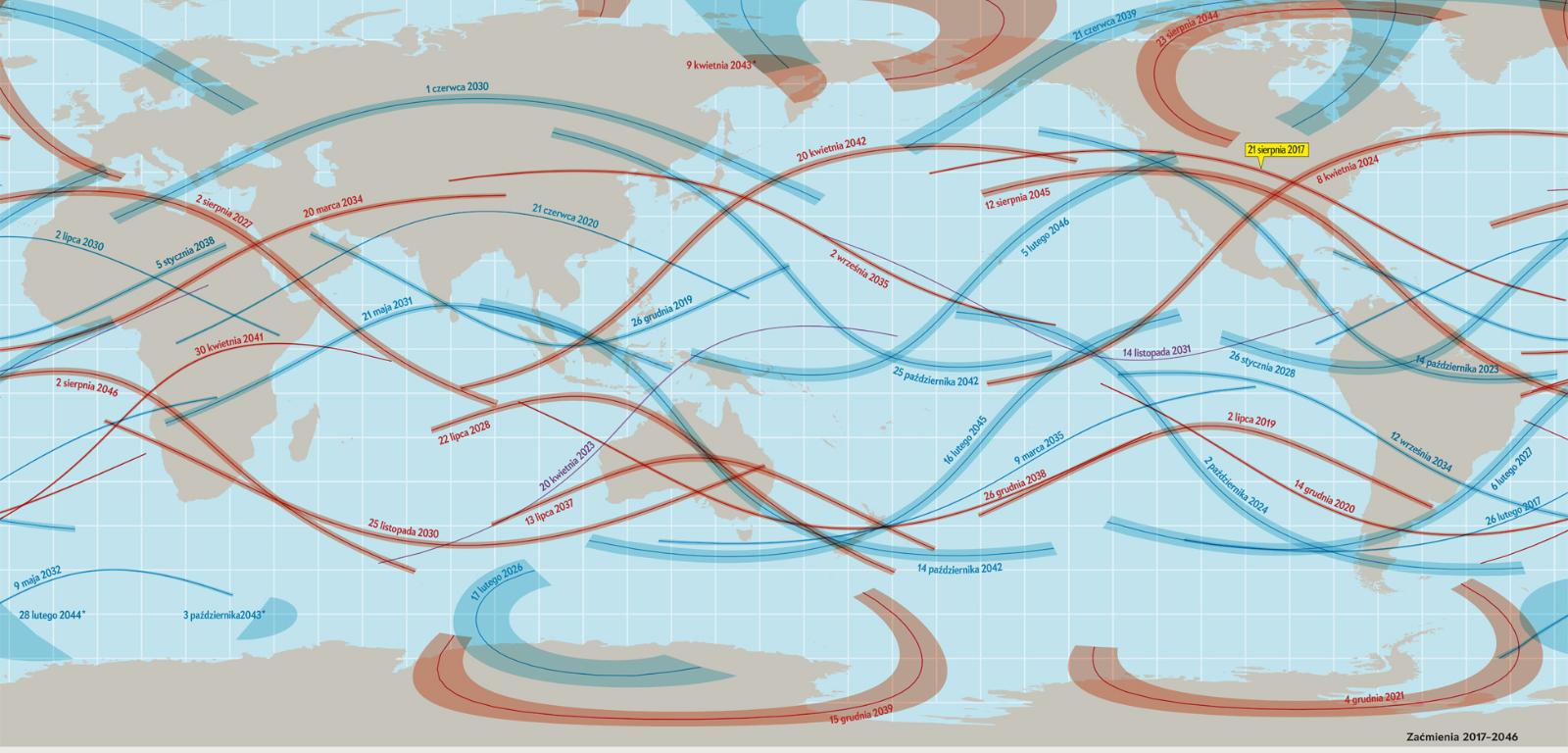 Emocje związane z zaćmieniem z 21 sierpnia 2017 roku są równie gorące, jak sama gwiazda, jednakże takie zjawiska zdarzają się co najmniej dwa razy w roku. Następuje to wtedy, gdy Słońce znajdzie się w płaszczyźnie orbity Księżyca. Niezwykłą rzeczą jest to, że tym razem Księżyc całkowicie (a nie częściowo) przysłoni Słońce, a jego cień rzucany na Ziemię trafi na miliony ludzi, a nie na oceaniczny plankton czy pingwiny lub niedźwiedzie polarne w pobliżu biegunów. W ciągu następnych 30 lat będziemy mieć 46 zaćmień różnych typów.
