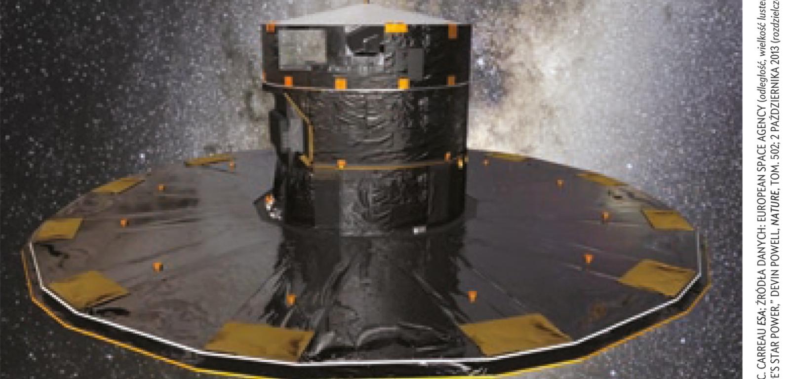 W najbliższym czasie astronomowie mają otrzymać nową mapę kosmosu. Trwa pięcioletnia misja statku kosmicznego Gaia, wystrzelonego pod koniec 2013 roku przez Europejską Agencję Kosmiczną, której celem jest opracowanie niezwykle precyzyjnego obrazu naszych okolic. Właśnie opublikowano pierwszy zestaw danych. Do końca swojej misji Gaia ma określić pozycje około jednego miliarda gwiazd w Drodze Mlecznej i sąsiednich galaktykach. Dokładność pomiarów jest tak duża, że pozwala rozróżnić obiekty o średnicy kątowej zaledwie pięciu mikrosekund – co można porównać do oglądania z Ziemi dwugroszówki na Księżycu.