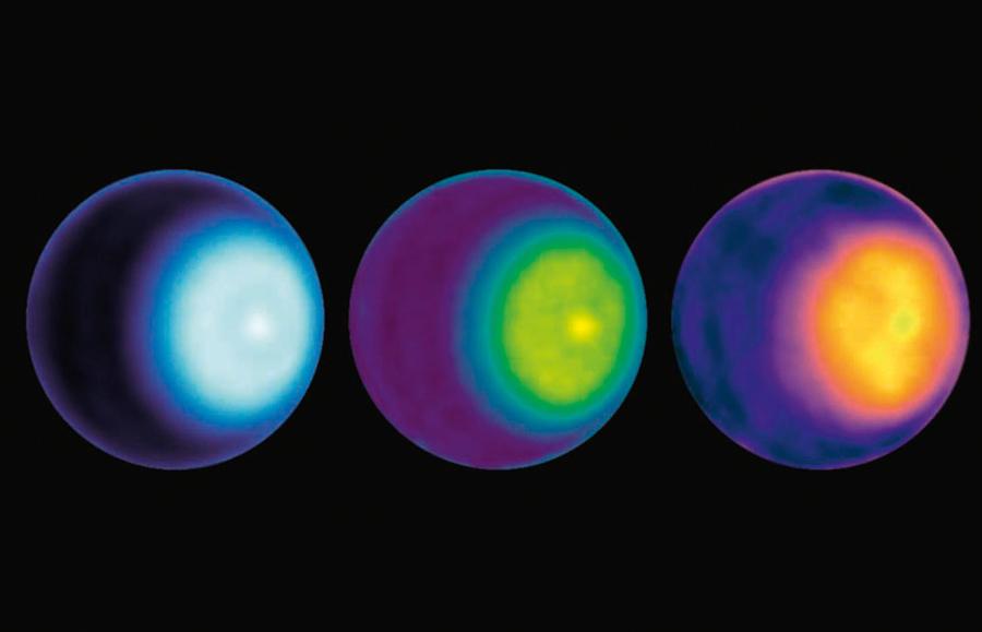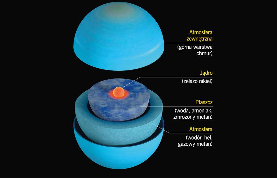 To ciekawe, ale żadna agencja kosmiczna nie zaplanowała misji specjalnie do tej planety. Może dlatego, że Uran znajduje się daleko? 20 jednostek astronomicznych (czyli dystansów Ziemia–Słońce) – a więc ok. 3 mld km – od nas. A poza tym jest na nim niewiarygodnie zimno (to najzimniejsza planeta w naszym układzie; najniższa zmierzona temperatura w jej troposferze to –224°C) i długo wydawało się, że to martwy, zmrożony na kość i nieruchomy świat. Po co tam lecieć i ogromnym nakładem środków oraz wysiłków badać gigantyczny (o średnicy czterech średnic Ziemi i masie 14,5 masy Ziemi) glob lodowy, na którym pewnie niewiele się dzieje? Czy są jakieś ważne naukowe, eksploracyjne powody, by to zrobić? Trudno powiedzieć. W kosmosie wiele ciał – poza gwiazdami – to po prostu kule gazu, lodu lub skał, na których nie widać śladów ciekawych aktywności. Uran też do niedawna wydawał się taki. Dzisiaj wiemy już, że jest to planeta niezwykła i sporo się na niej dzieje.