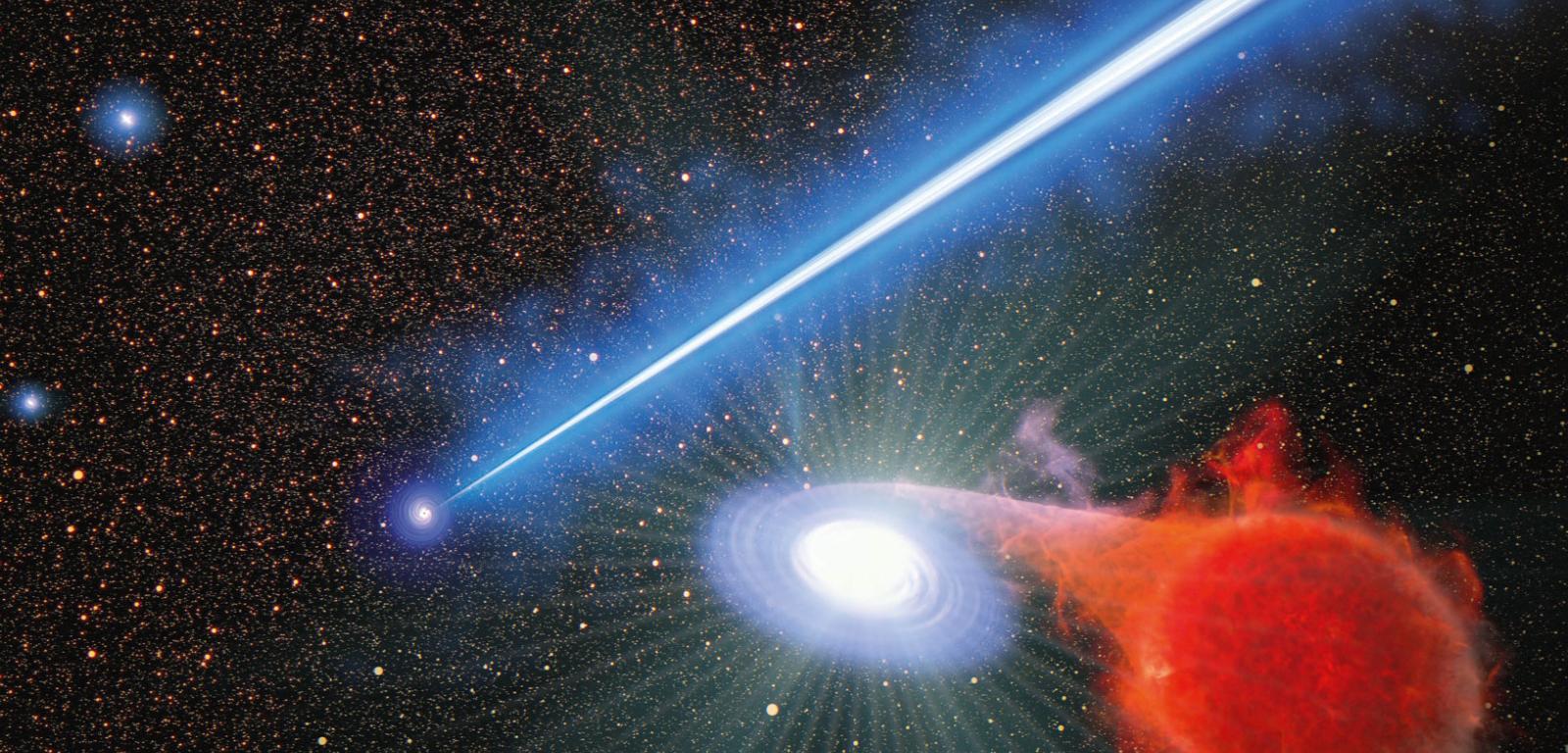 Co jednak mają z tym wspólnego strumienie plazmy z czarnych dziur, o długości kilku tysięcy lat świetlnych, zdmuchujące materię, która wpadnie w energetyczną strugę? Dzięki obserwacjom teleskopu Hubble’a okazało się, że w pobliżu strumienia powstaje dwa razy więcej nowych niż gdzie indziej. Odkrycie dwukrotnie większej liczby nowych oznacza, że w pobliżu dżetu znajduje się dwukrotnie więcej podwójnych układów gwiazd tworzących nowe lub że te układy wybuchają dwa razy częściej niż podobne układy gdzie indziej w galaktyce. Jak jest i dlaczego? Wyjaśnienie tych obserwacji dopiero się zaczyna. Niewykluczone, że to efekt ciśnienia światła emanującego z dżetu.