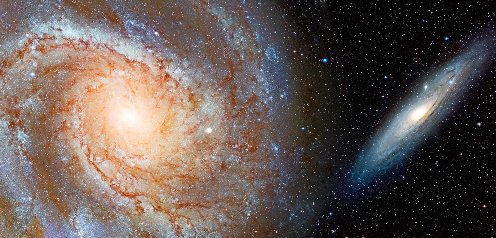 Czasami dobrze jest na sprawy spojrzeć z pewnego dystansu. Być może pomogą w tym najnowsze badania przeprowadzone przez astronomów z Francji, Finlandii i Wielkiej Brytanii. Korzystając z obserwacji prowadzonych przez orbitalne teleskopy Hubble i Gaia – pierwszy wysłała NASA, drugi Europejska Agencja Kosmiczna – naukowcy postanowili jeszcze raz ocenić, czy i kiedy może dojść do zderzenia dwóch największych galaktyk spiralnych wchodzących w skład naszej Grupie Lokalnej. Pierwszą jest rodzima Droga Mleczna, drugą – Galaktyka Andromedy. Obecnie te dwa olbrzymie skupiska gwiazd dzieli odległość 2,5 mln lat świetlnych, ale pędzą ku sobie z prędkością ok. 100 km na sekundę. Gdyby się zderzyły, obie żadna nie wyszłaby na tym dobrze. Rozleciałyby się na kawałki, a rozpad dwóch spirali dałby początek galaktyce eliptycznej o kulistym kształcie.