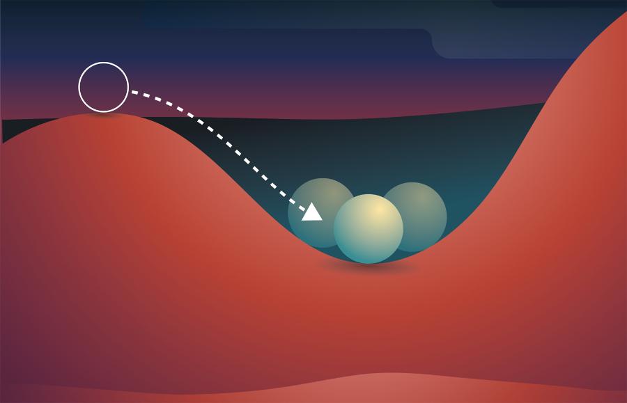 Fizycy uważają, że zadanie przesunięcia pola Higgsa z jego domyślnej wartości przypomina trochę toczenie głazu pod górę. Jeśli głaz spoczywa na dnie doliny, można spróbować popchnąć go w górę, ale jeśli go puścimy, po prostu stoczy się w dół.